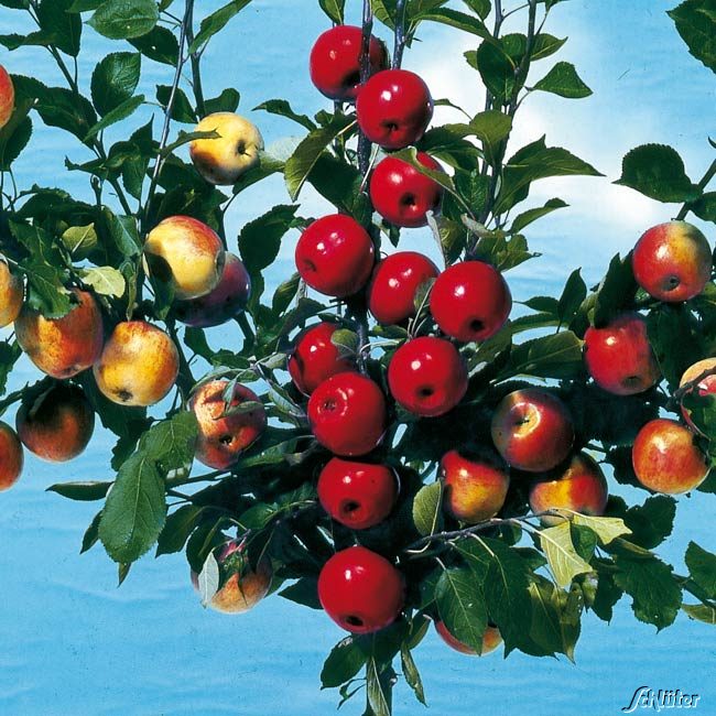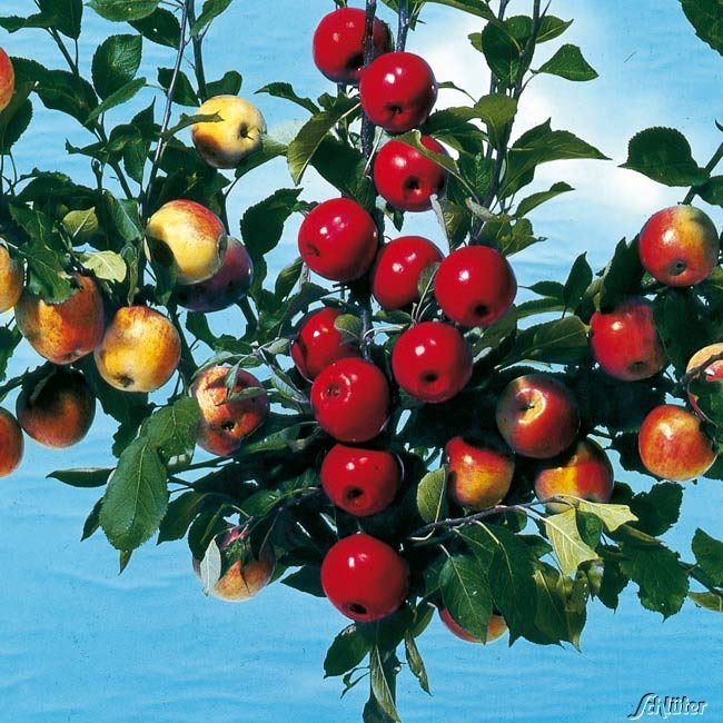 Der Apfel-Drilling eignet sich ideal für kleine Gärten, in denen man keinen Platz für 3 große Bäume hat. Er entwickelt sich zu einem baumähnlichen Strauch und ist schwachwachsend. Die einzelnen Apfelsorten befruchten sich gegenseitig selbst, so dass ein guter Ertrag bei der Apfelernte gesichert ist. Die Sorten reifen zu unterschiedlichen Zeiten.