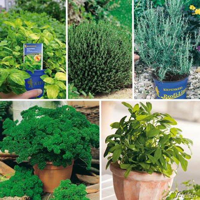 Das aromatische Sortiment 'Winterharte Hexenkräuter' gibt es als 5-er Set, bestehend aus jeweils