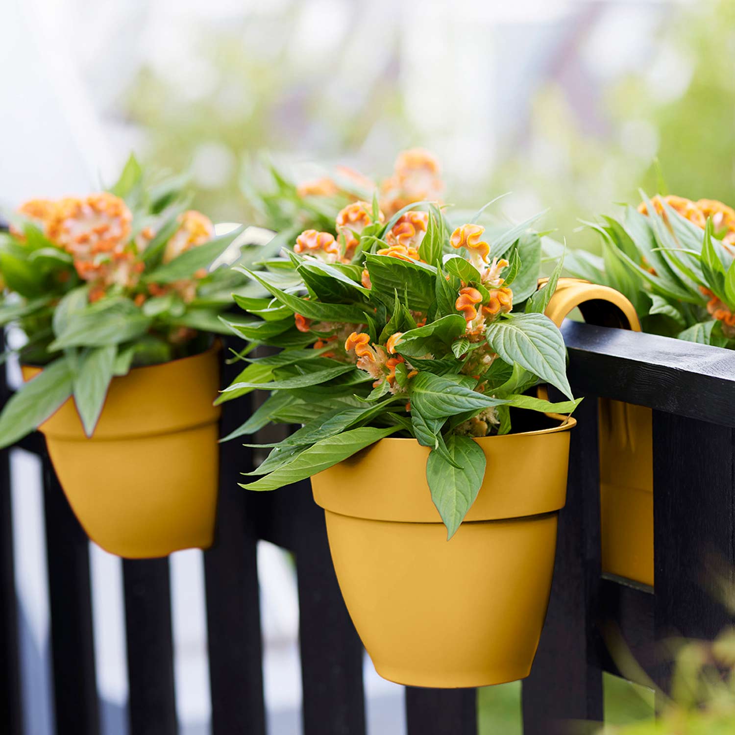 Der Flower Twin ist so gestaltet, dass er auf nahezu jedem Balkongeländer mit einer Breite von bis zu 6,5 cm passt. Er ist in einer Reihe von trendigen Farben erhältlich, von beruhigendem Anthrazit oder Seidenweiß bis hin zu lebhaftem Honiggelb. Seine weichen, runden Formen und seine attraktive, natürliche Oberfläche passen zu jedem Stil und schaffen ein harmonisches Ambiente.