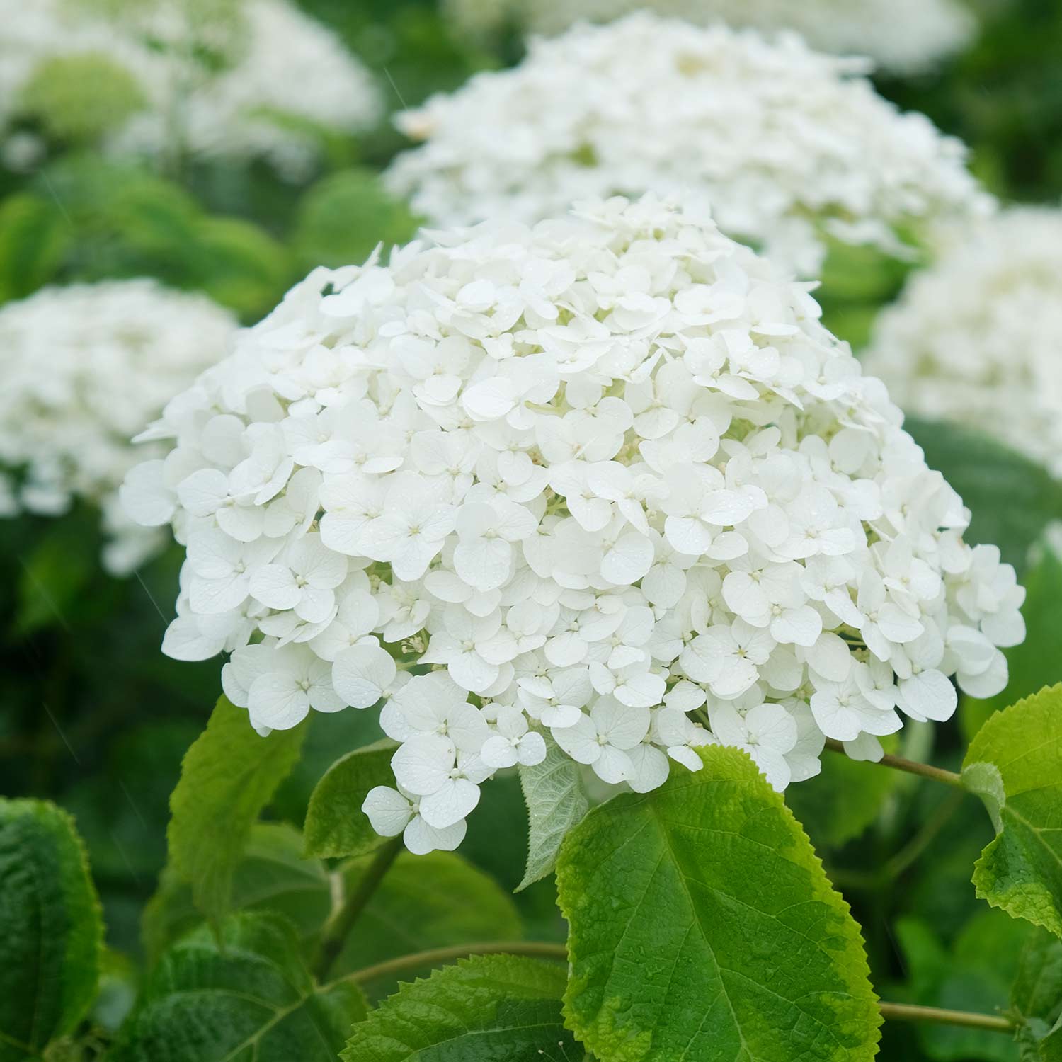 Die Blütenbälle, die sie im Sommer präsentiert, sind zu Beginn der Blütezeit im Juni/Juli noch frischgrün und hellen zu einer reinweißen Blüte auf. Die enorm großen Blütenbälle können gerne auch nach dem Verblühen im September den ganzen Herbst/Winter über an der Pflanze stehen gelassen werden, da sie auch im verblühten Zustand noch besonders zierend sind. Ausgesprochen pflegeleicht ist die ‚Annabelle‘ außerdem, weil sie absolut winterhart ist und wir von Jahr zu Jahr mehr Freude an den etwa 1 - 1,3m großen Pflanze haben werden.