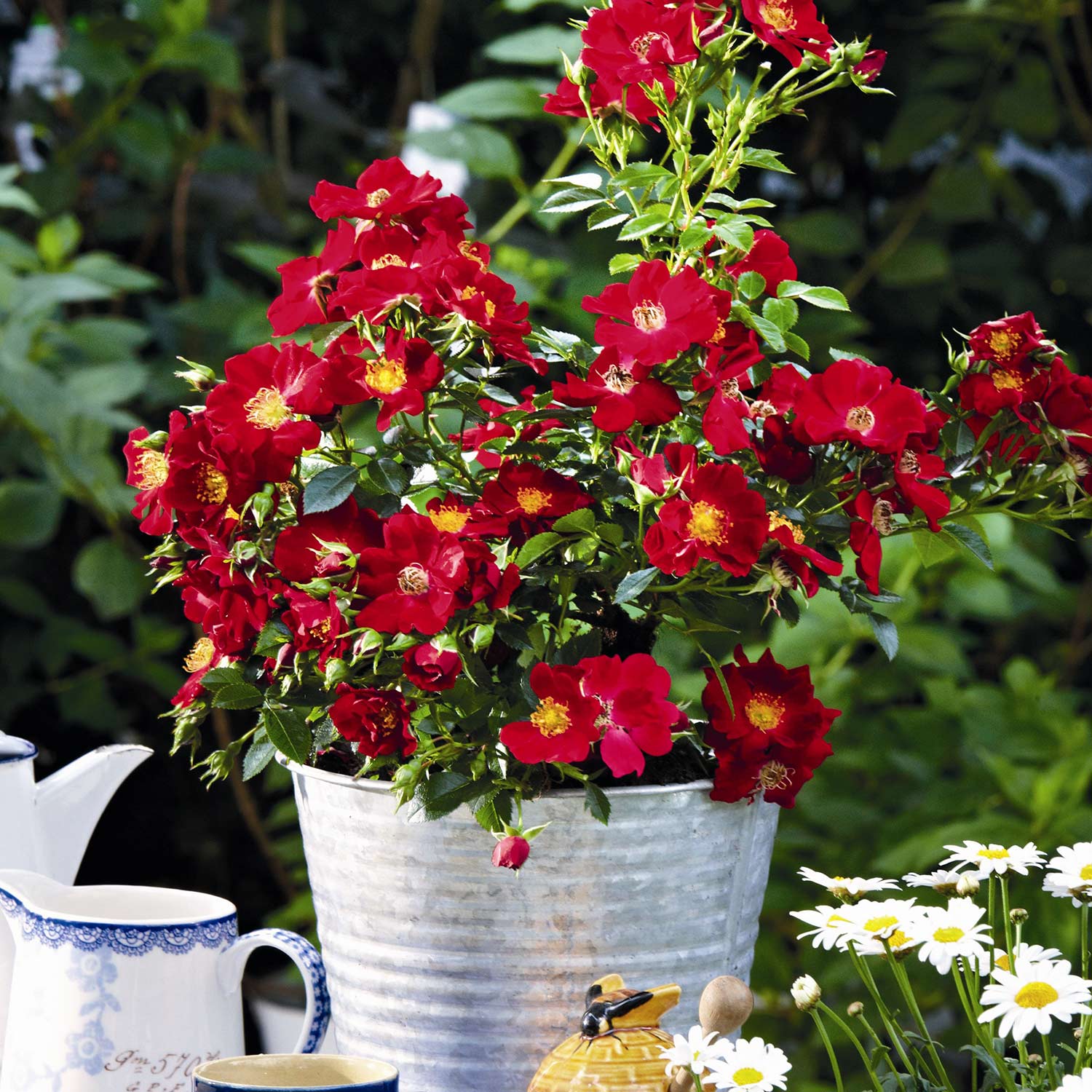 Die Beetrose 'Bienenweide® Rot' ist die perfekte Wahl für alle, die ihren Garten mit einem pflegeleichten und ökologisch wertvollen Highlight bereichern möchten. Ihre dunkelroten Blüten mit dem gelben Auge machen sie zu einem unvergesslichen Anblick, der von Juni bis zum ersten Frost anhält.