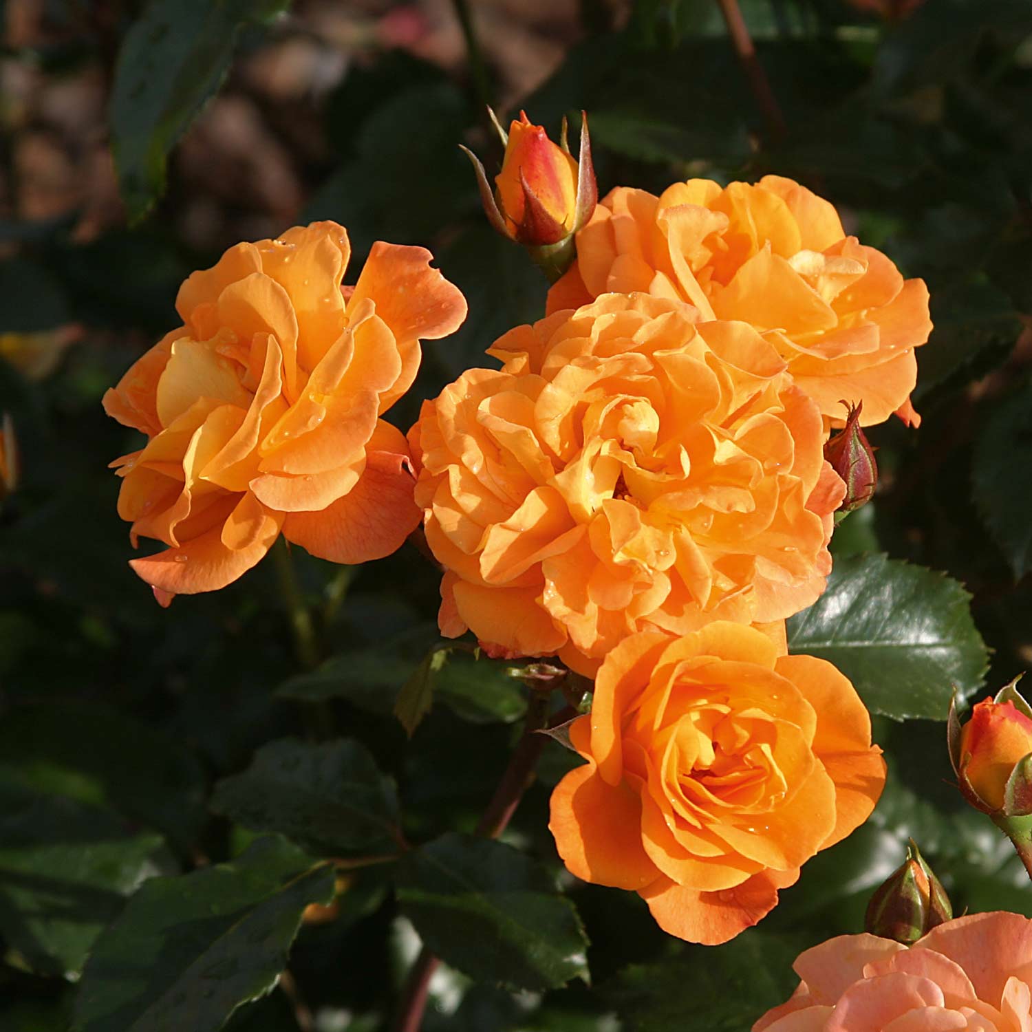 Die Beetrose 'Westzeit®' fasziniert mit einem spektakulären Farbwechsel ihrer Blüten, die in leuchtenden Tönen von Orange über Rosa bis hin zu Apricot changieren. Ihre halbgefüllten Blüten und der angenehm würzige Duft machen sie zu einem Highlight in jedem Garten.