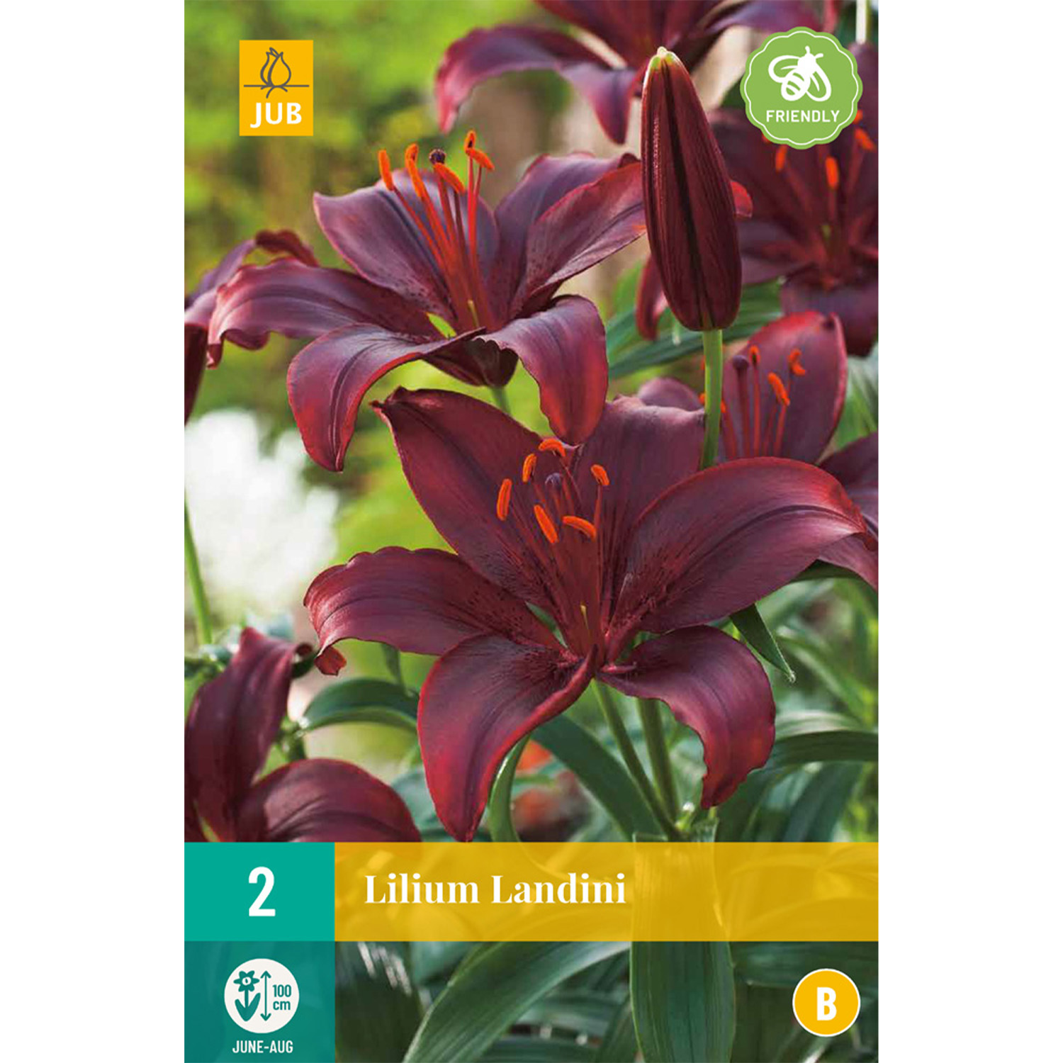 Die Asiatische Lilie 'Landini' ist eine ideale Wahl für alle, die eine pflegeleichte, dramatische und eindrucksvolle Pflanze für ihren Garten suchen. Ihre tiefdunklen Blüten bieten ein spektakuläres Farbspiel und verleihen jedem Garten eine mystische Atmosphäre.