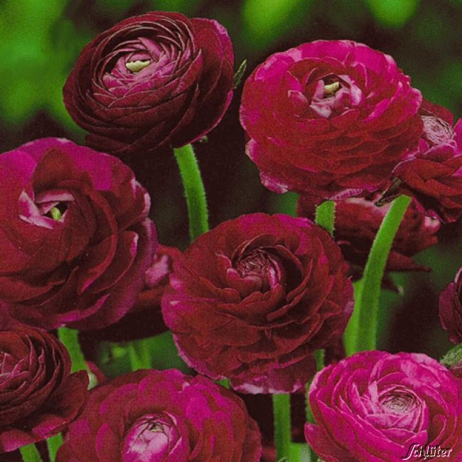 Die Ranunkeln "Paars" beeindrucken uns mit ihrer wunderschönen, tief dunkel-violetter Farbe, dass die gefüllten und ballähnlichen Blüten sehr geheimnisvoll erscheinen lassen.