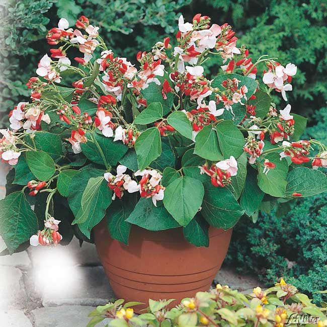 Die Bohne "Hestia" hat einen niedrigen, buschigen und überhängenden Wuchs. Sie ist ideal für Ampeln, Balkonkästen, Beete und Hanging Baskets geeignet.