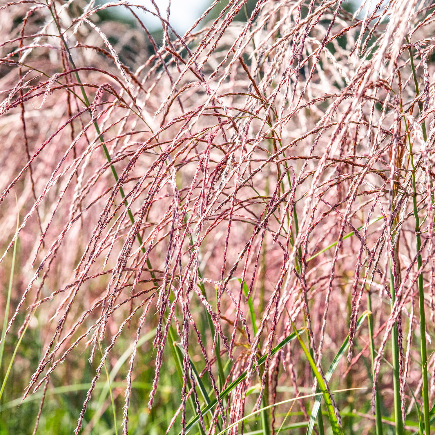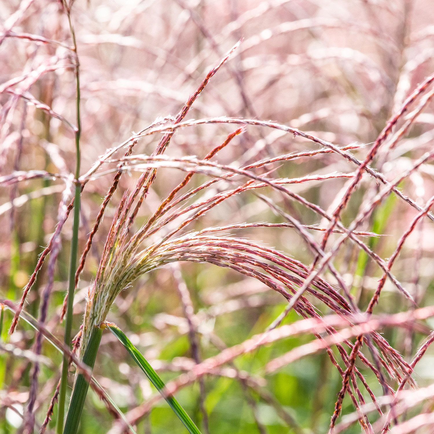 Das Chinaschilf 'Flamingo' (Miscanthus sinensis 'Flamingo'), eine Ernst-Pagels-Züchtung, ist ein Highlight unter den Ziergräsern mit seinen elegant bogig überhängenden Blättern und den auffallenden tief-rosa bis bräunlichrosa Blütenrispen von September bis Oktober. Dieses schmalblättrige Schmuckgras erreicht eine Höhe von bis zu 170 cm und bevorzugt einen sonnigen Standort auf durchlässigem, nährstoffreichem Boden.