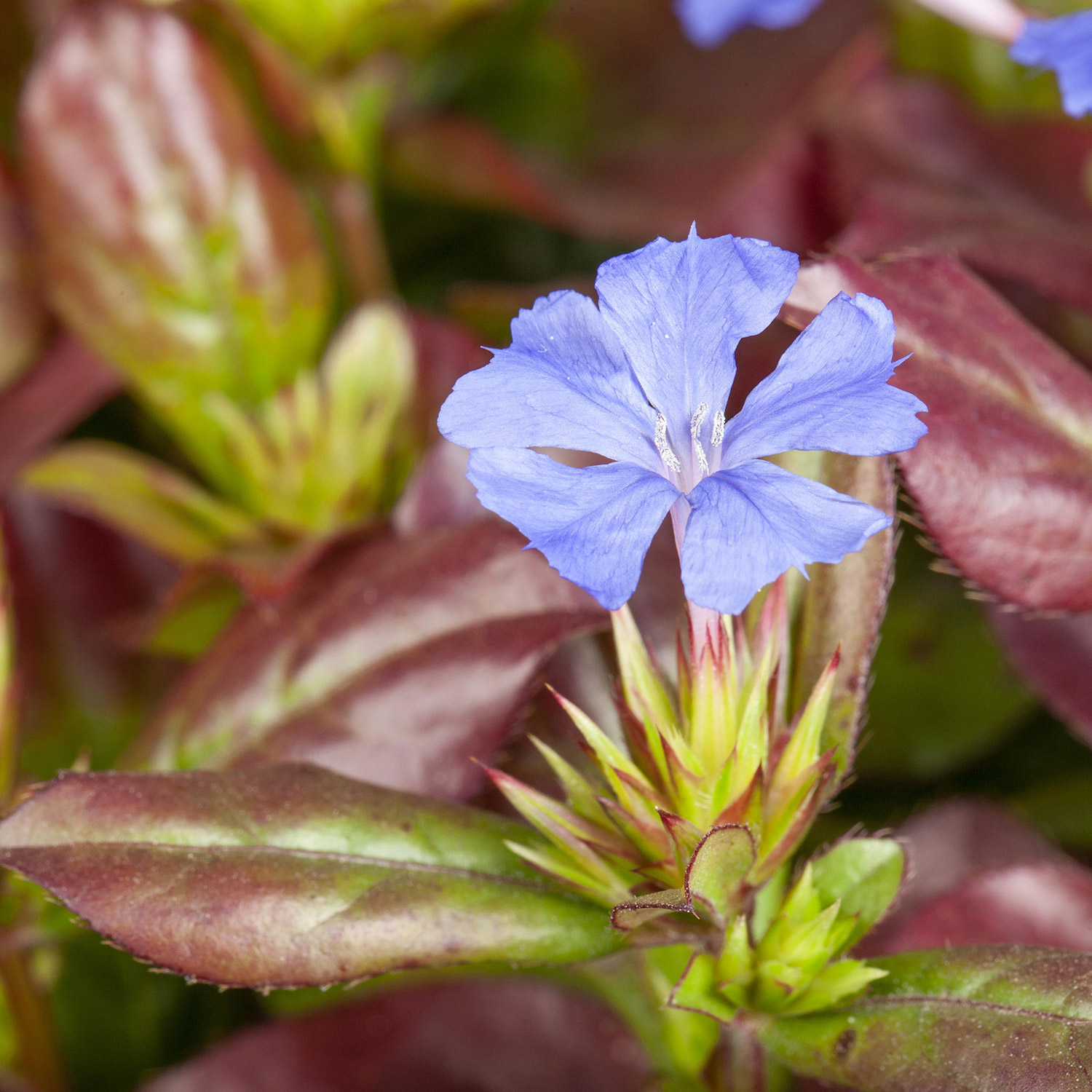 1830 wurde der Chinesische Bleiwurz auf einer Forschungsreise bei Peking gefunden und hat sich seitdem auch in unseren Gärten etabliert. Nach seiner Entdeckung durch den deutsch-russischen Botaniker Alexander von Bunge verwendete man den Chinesischen Bleiwurz sogar in der Zahnmedizin. Chinesischer Bleiwurz (Ceratostigma plumbaginoides) ist mit seinen strahlend blauen Blüten in jedem Garten ein echter Hingucker. Er bildet ab dem Spätsommer einen wunderschönen blühenden Teppich, der sich in einer Höhe von 10 - 30 cm am liebsten an einem trockenen und sonnigen Standort ausbreitet. Enzianblau leuchten die kleinen radförmigen Blüten von August bis Oktober. Im Kontrast stehen dazu die dunkelgrünen ovalen Blätter, die eine feine Behaarung aufweisen. Wer seinen Garten gerne mit einem Blütenwasserlauf gestalten möchte, kann einen schimmernden Pflanzenteppich anlegen, der sich wie ein kleiner Bach durch den Garten windet. Elemente dieser Art finden sich auch in den liebevoll gestalteten Feng-Shui Gärten, die durch ihre besonders harmonische Gartengestaltung immer mehr Anhänger gewinnen. Die Imitation von Wasser wird hier oft als erfrischendes und beruhigendes Element eingesetzt. Die Hornnarbe, wie die Pflanze auch genannt wird, entwickelt als Kontrast zu den leuchtend blauen Blüten im Herbst ein kräftiges kupfer- bis feuerrotes Laub und ist damit auch am Ende der Blüte ein attraktiver Blickfang im Garten. Ursprünglich im Himalaya beheimatet ist Bleiwurz in Tibet sogar als Pflanze der Weisheit bekannt. Als Wildstaude ist Chinesischer Blauwurz (Link) wenig pflegeintensiv. Ein Rückschritt ist nicht nötig, kann aber nach der Blüte im Spätherbst erfolgen. Am besten pflanzen Sie diese attraktive Pflanze im Frühjahr. Achtung: Jungpflanzen vertragen keinen harten Frost und müssen während des Anwachsens feucht gehalten werden. Im Winter braucht Chinesischer Bleiwurz stets ein wenig Winterschutz, er treibt dann jedes Jahr aufs Neue zwar spät aber zuverlässig aus. Durch die späte Blüte und seine ungewöhnliche Farbe ist Chinesischer Bleiwurz ein Gewinn für jeden Garten.