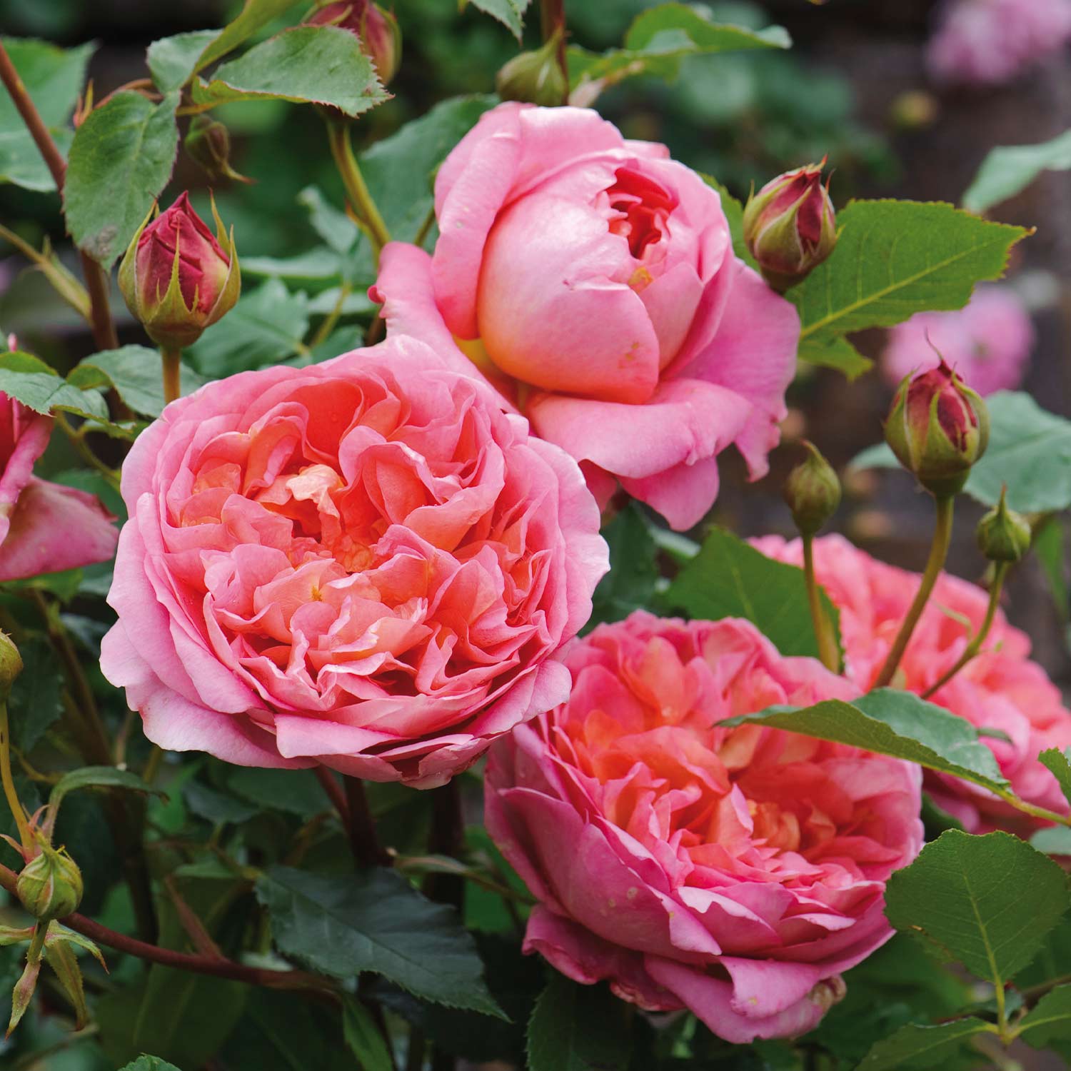 Diese Strauchrose 'Boscobel' ist gesund, wächst aufrecht und hat dunkelgrünes, glänzendes Laub.