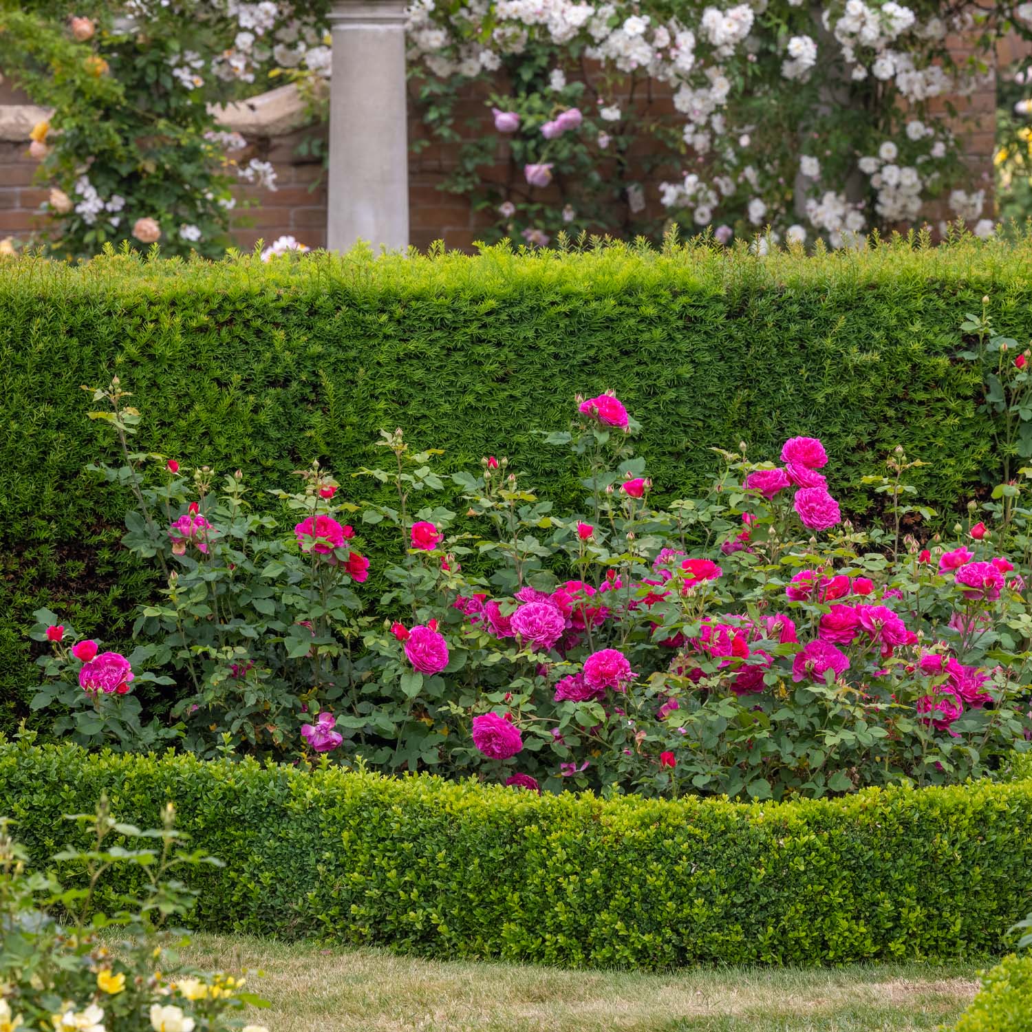Egal ob als Solitärpflanze, in Gruppenpflanzungen oder als elegante Rosenhecke – 'Gabriel Oak' ® ist vielseitig einsetzbar und verzaubert in jedem Kontext.