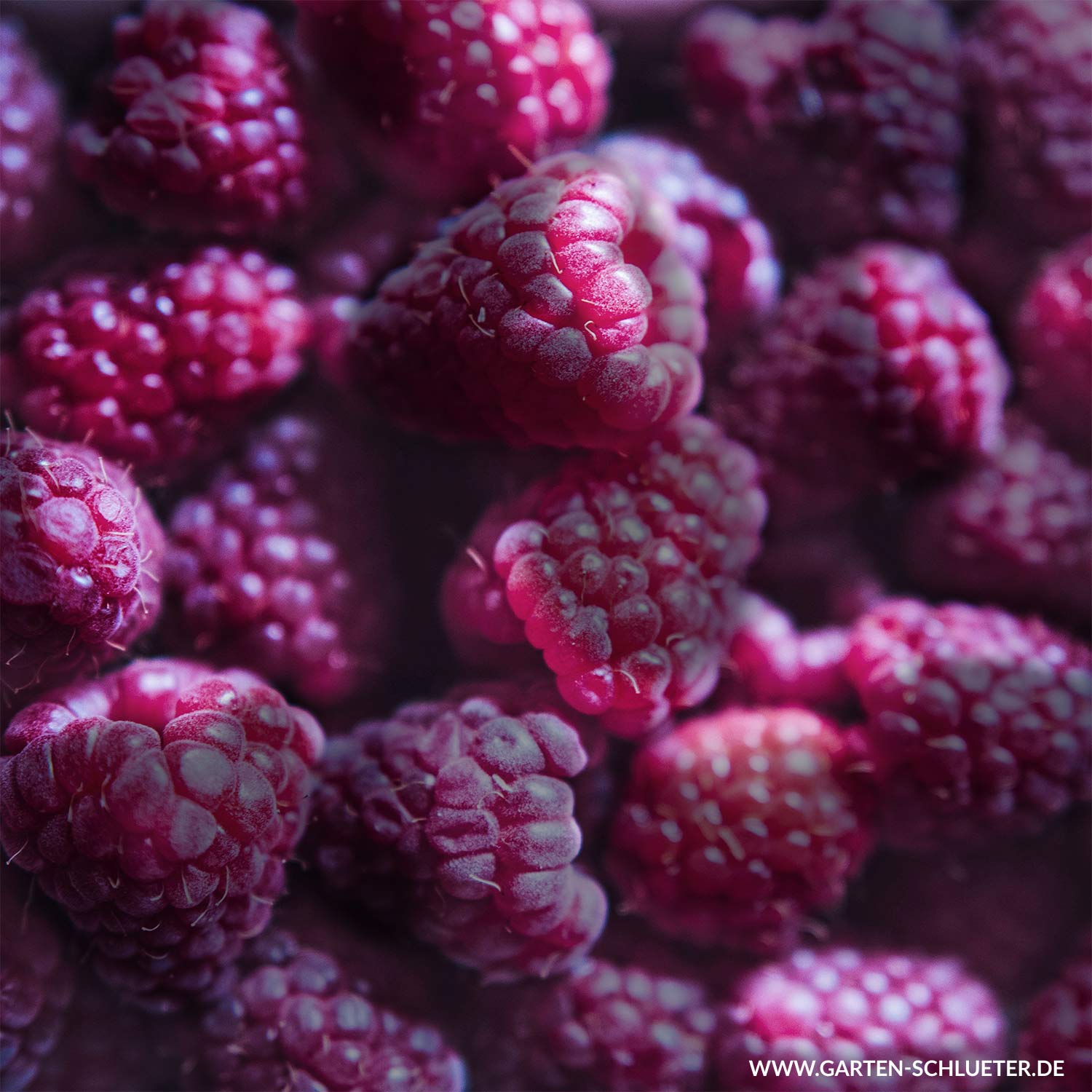 Die Himbeere 'Glen Coe' ist eine besondere Züchtung, die aus der Kreuzung einer roten und einer schwarzen Himbeere entstanden ist. Ihre außergewöhnliche tief violett-rote Farbe ist Erkennungszeichen.