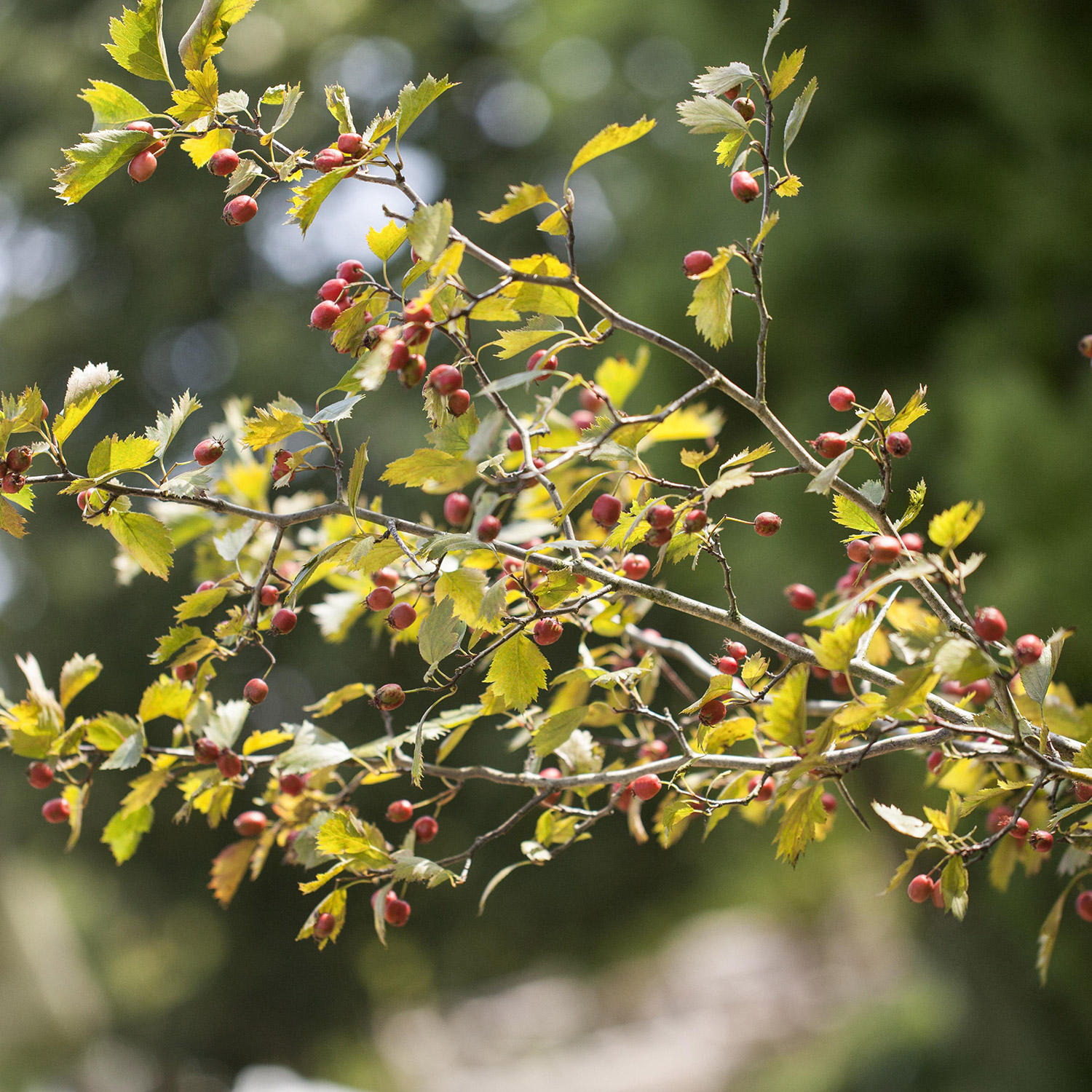 Der Weißdorn ist ein wichtiges Gehölz für Tiere und wird daher gerne in Landschaften genutzt. Diese undurchsichtige Hecke wird auch gerne in den heimischen Gärten genutzt und erreicht eine Höhe von ca. 2- 5 Metern. Der Weißdorn trägt gelappte, dunkelgrüne Blätter und von Mai bis Juni weiße Blüten. Im September zeigen sich kleine dunkelrote Früchte.