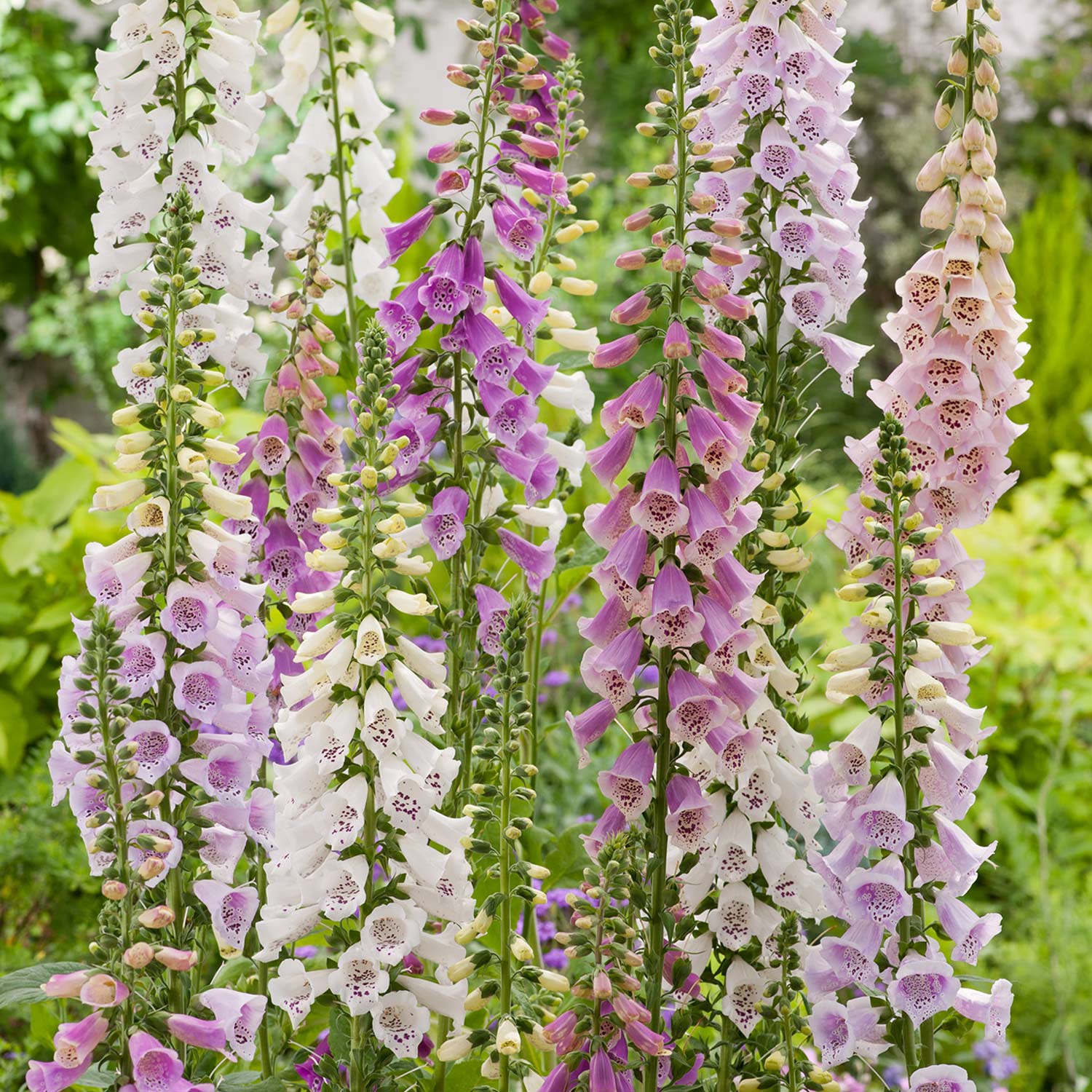 Bei dieser Sorte stehen die einzelnen Blüten ab und hängen nicht wie bei der Wildart. Der Fingerhut macht einen besonders guten Eindruck in naturnahen Gärten. Durch seinen aufrechten Wuchs findet er besonders häufige Verwendung vor Gehölzen und Koniferen.