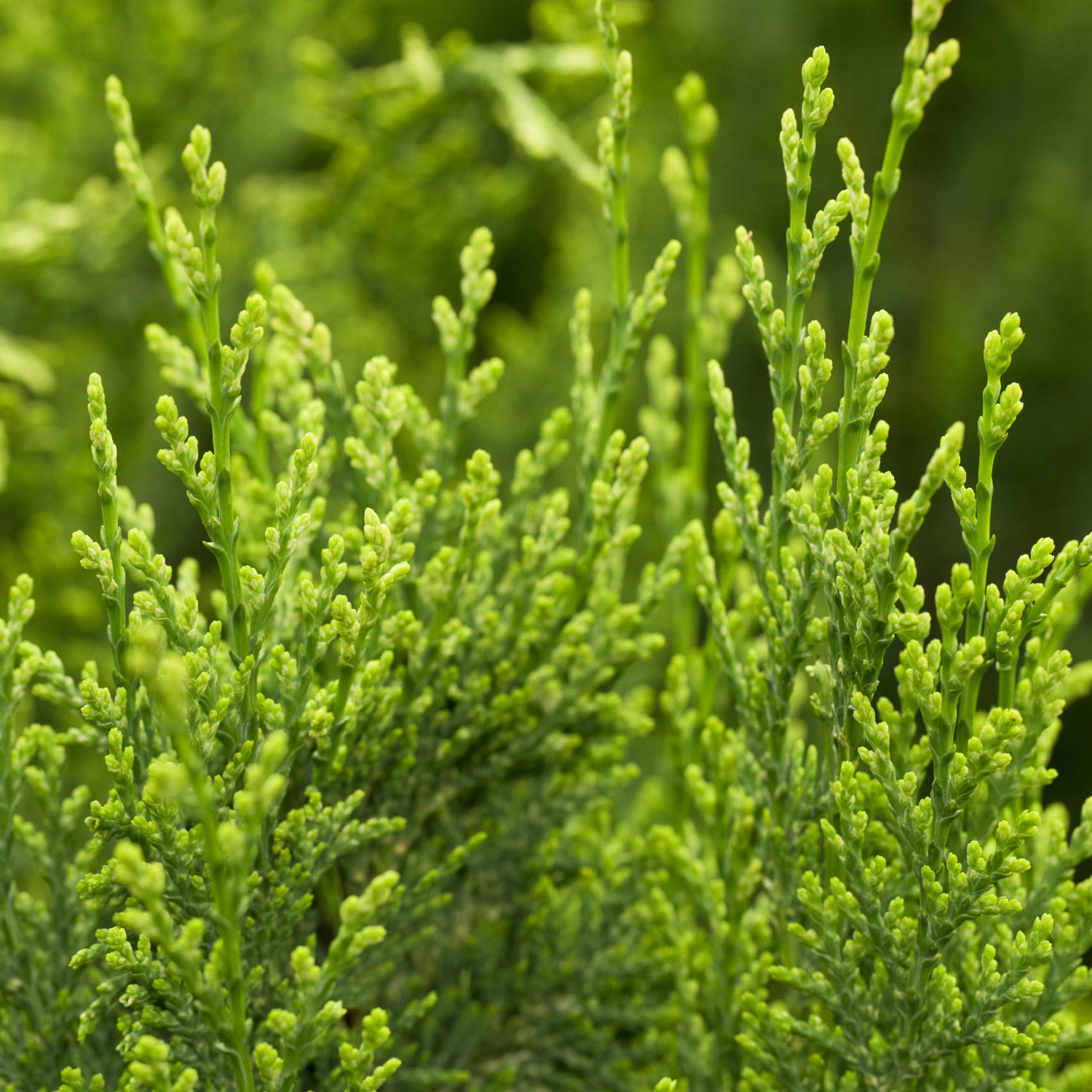- säulenförmiger Wuchs, im Austrieb rahmweiße Spitzen, die im Sommer vergrünen