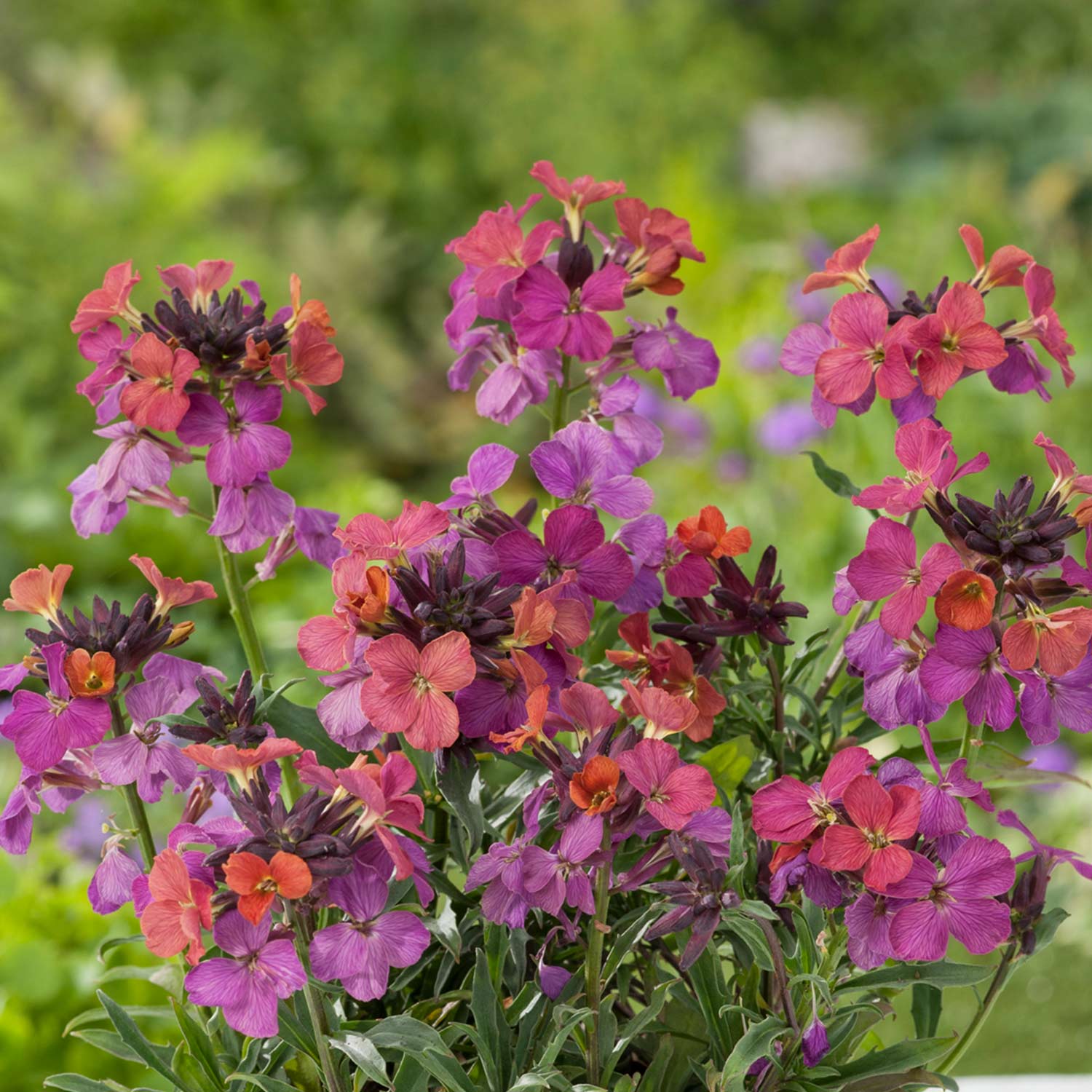 Ursprünglich stammt Goldlack, der Überlieferung nach, aus Syrien und der Türkei. Die kalkliebende Pflanze reiste vermutlich mit Umwegen über Südosteuropa bis zu uns und erfreut sich nun als orientalische Schönheit großer Beliebtheit. Manchmal findet man den trockenheitsliebenden Goldlack noch verwildert in felsiger Umgebung. Der aufrechte Nischenblüher liebt magere Böden und gedeiht am besten an Standorten die einen natürlichen Winterschutz bieten. Wegen der Frostempfindlichkeit lässt sich der wintergrüne Goldlack 'Red Jep' - Schöterich in unseren Breitengraden alternativ gut im Topf kultivieren. Der zweijährige Kreuzblüter kann aber aufgrund ähnlicher Standortbedürfnisse auch direkt ins Beet zu Löwenmäulchen gesetzt werden und sät sich an geschützten Plätzen mit etwas Glück selbst aus. Doch auch mit Stecklingen lässt sich Goldlack 'Red Jep' - Schöterich bei Bedarf vermehren. Ehemals als Schnittblume beliebt, findet sich der bunte Blickfang heutzutage eher in naturnahen Pflanzungen. Erfahrene Gärtner setzen vorzugsweise Zwiebelblüher und Stauden, die in einem ähnlichen Farbschema das Beet nach und nach zum Erblühen bringen. Durch die Schattierung von 'Red Jep' innerhalb der Blüte von orange, rot bis hin zu dunklen Lilatönen ergibt sich im steten Wechsel ein lebendiges Bild, das immer wieder aufs Neue begeistert. Und wer jetzt den anmutigen Goldlack nach alter Sitte Brauch vielleicht doch als Schnittblume verschenken möchte, der kann damit auf wunderbar altmodische Art durch die Blume "Ich sehne mich nach Dir" sagen