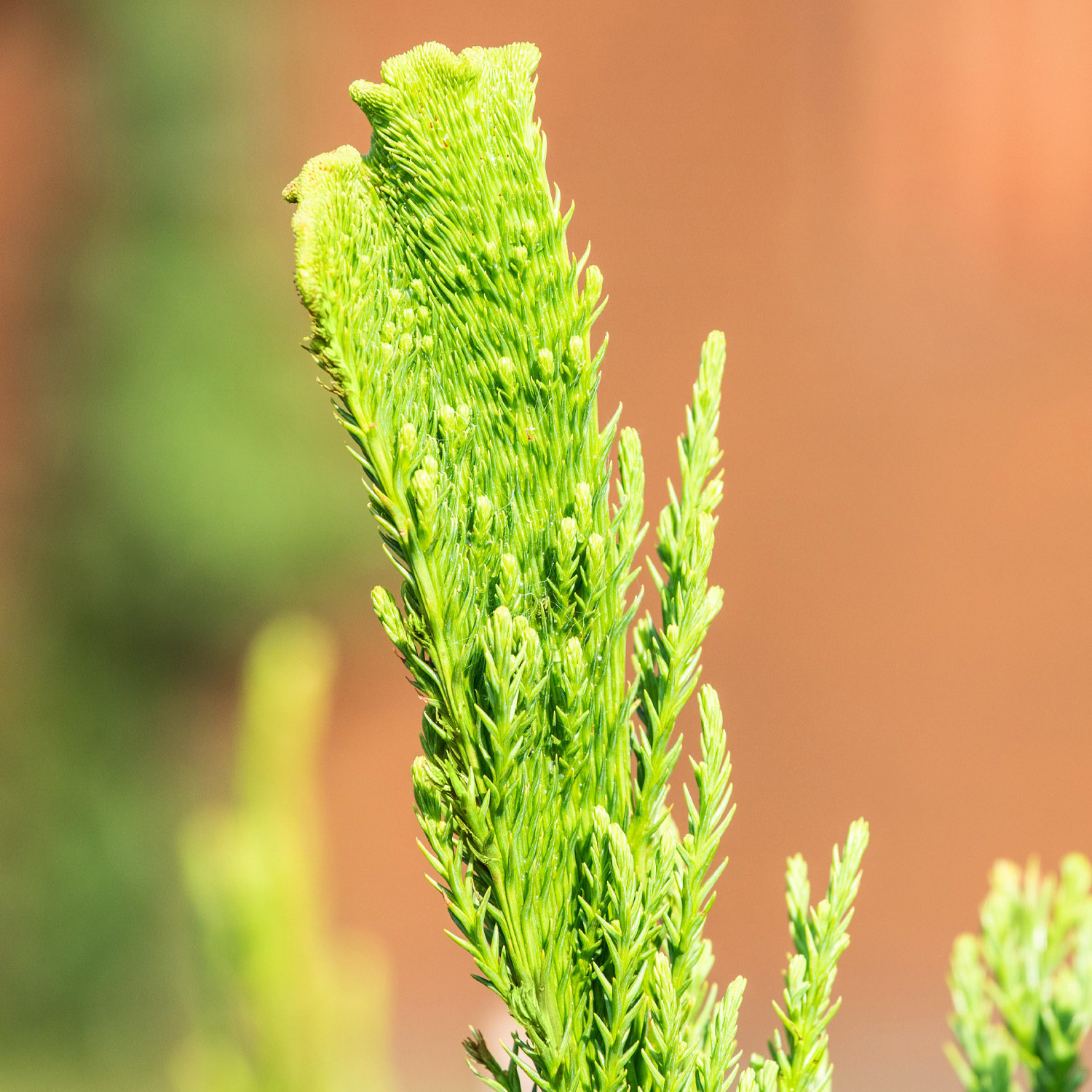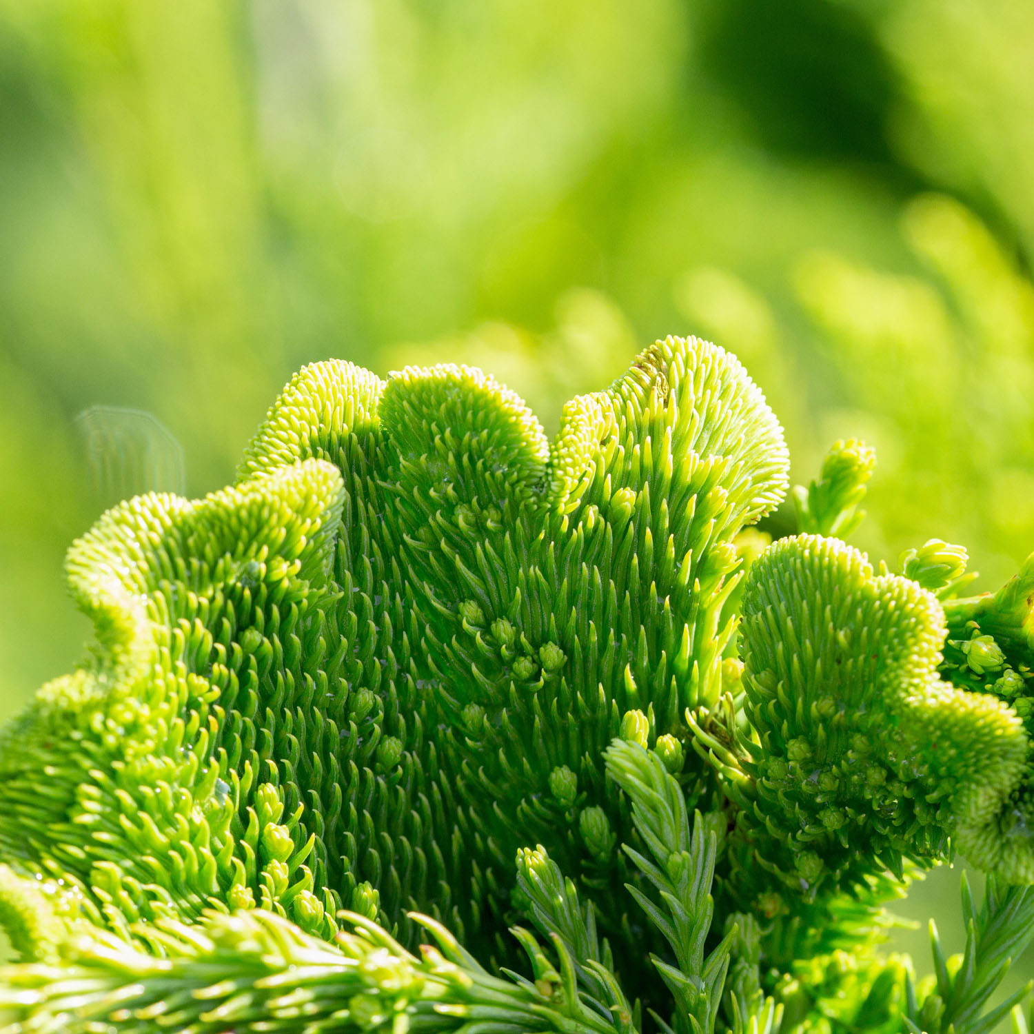 - Triebe: Frischgrüne, breite und fächerartige Triebspitzen, die eine faszinierende, verdrehte Form aufweisen.