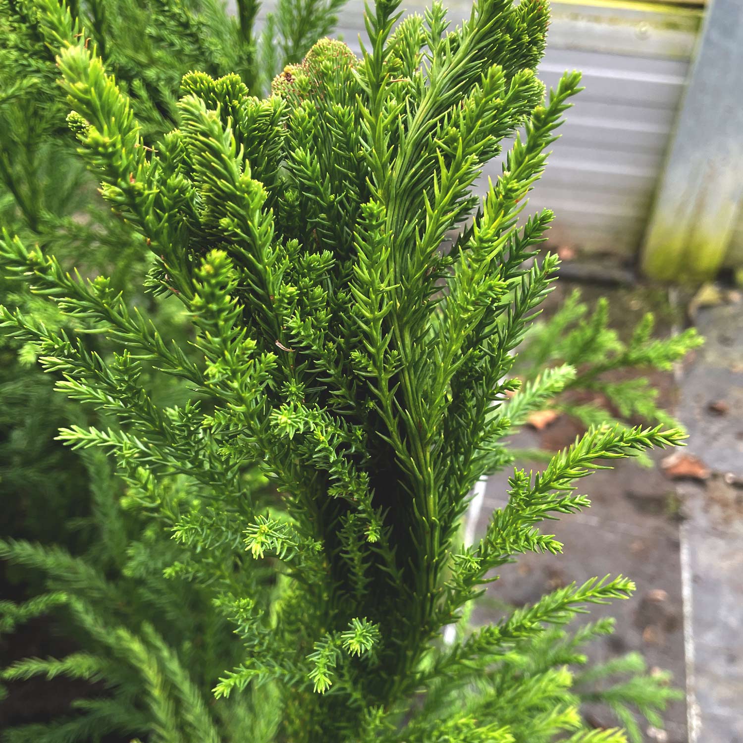 Die Hahnenkamm-Sicheltanne 'Cristata' ist trotz ihrer exotischen Erscheinung relativ pflegeleicht. Sie benötigt einen gut durchlässigen, feuchten und nährstoffreichen Boden, um optimal zu gedeihen. Ein sonniger bis halbschattiger Standort fördert ihr Wachstum und die Entwicklung der charakteristischen Triebe. Regelmäßiges Gießen ist besonders in trockenen Perioden wichtig, um den Boden gleichmäßig feucht zu halten.