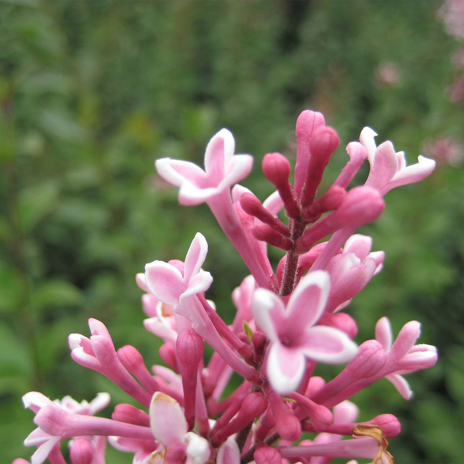Die Blüten bestehen aus bis 7 cm langen duftenden Rispen, die eine rosa Farbe haben und leicht ins lila übergehen. Die Kronzipfel sind weiß und stark duftend. Der Herbstflieder hat seine Hauptblüte im Mai und erfreut uns regelmäßig mit einer Nachblüte, die bis in den Oktober hinein reicht.
