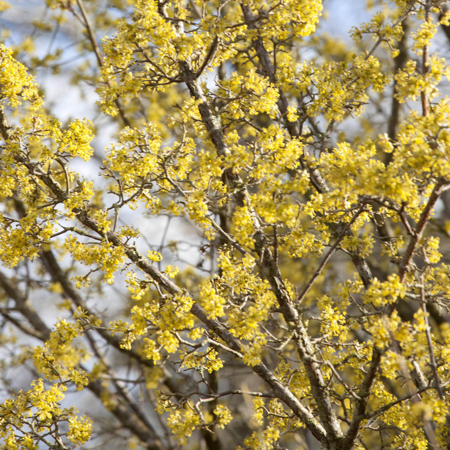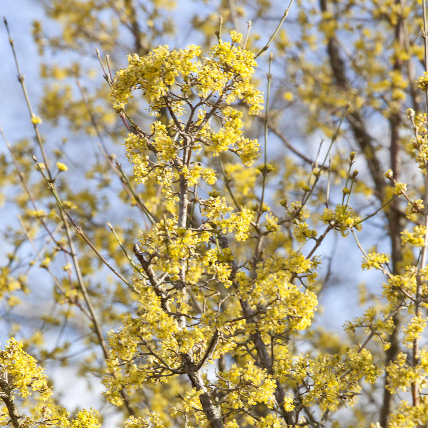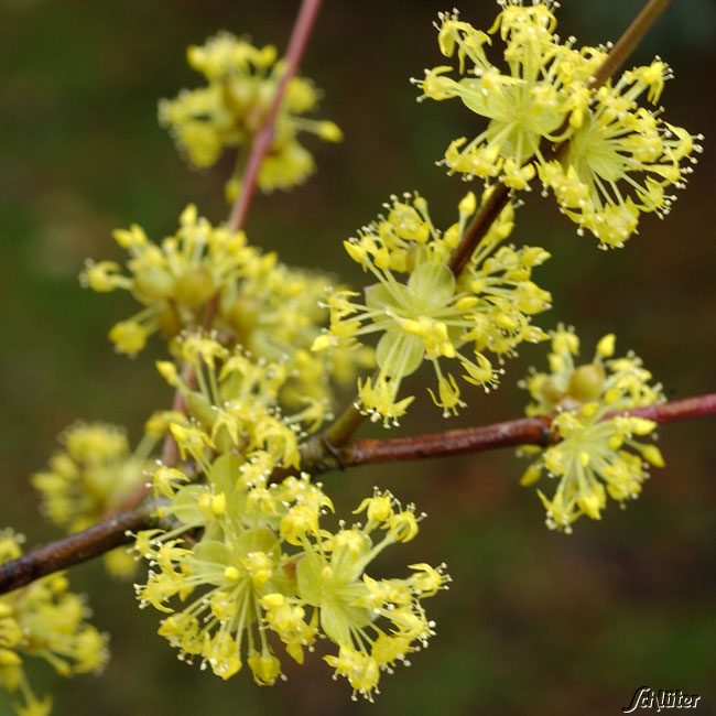 Die Japanische Kornelkirsche (Cornus officinalis) ist ein prächtiger Frühblüher, der schon ab Februar mit seinen kleinen gelben Blüten das Ende des Winters ankündigt. Als idealer Solitärbaum fügt er sich hervorragend in diverse Gartengestaltungen ein und zieht Bienen sowie Vögel an.