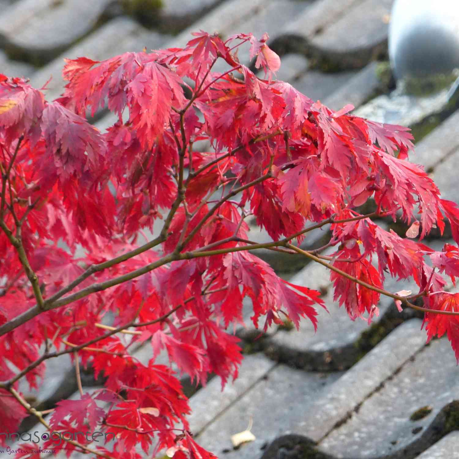 - rote Flügelfrüchte bilden schönen Kontrast zum Laub