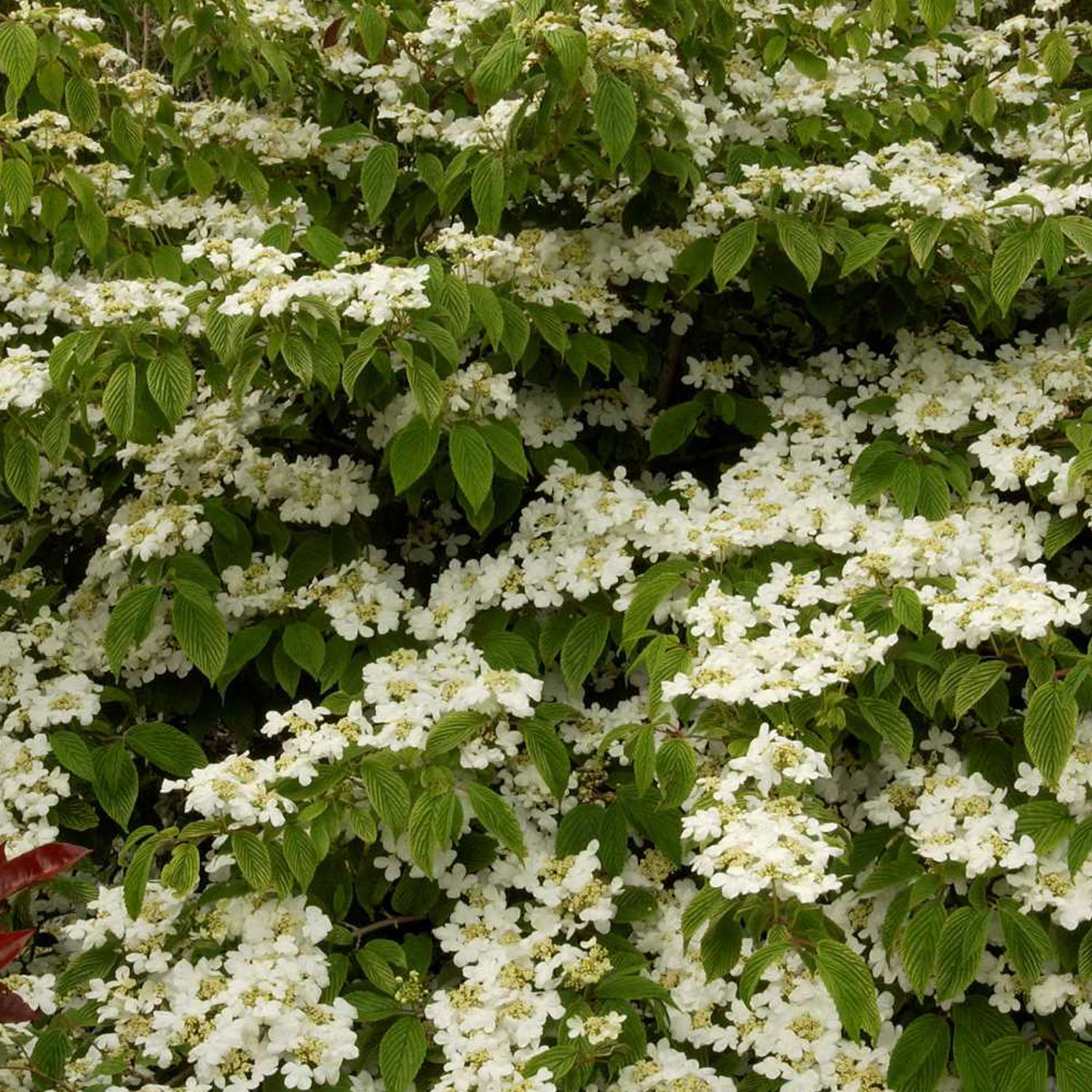 Der japanische Schneeball "Mariesii Great Star" gehört zu den späten Frühjahrsblühern und zeigt einen überreichen weissen Blütenflor.