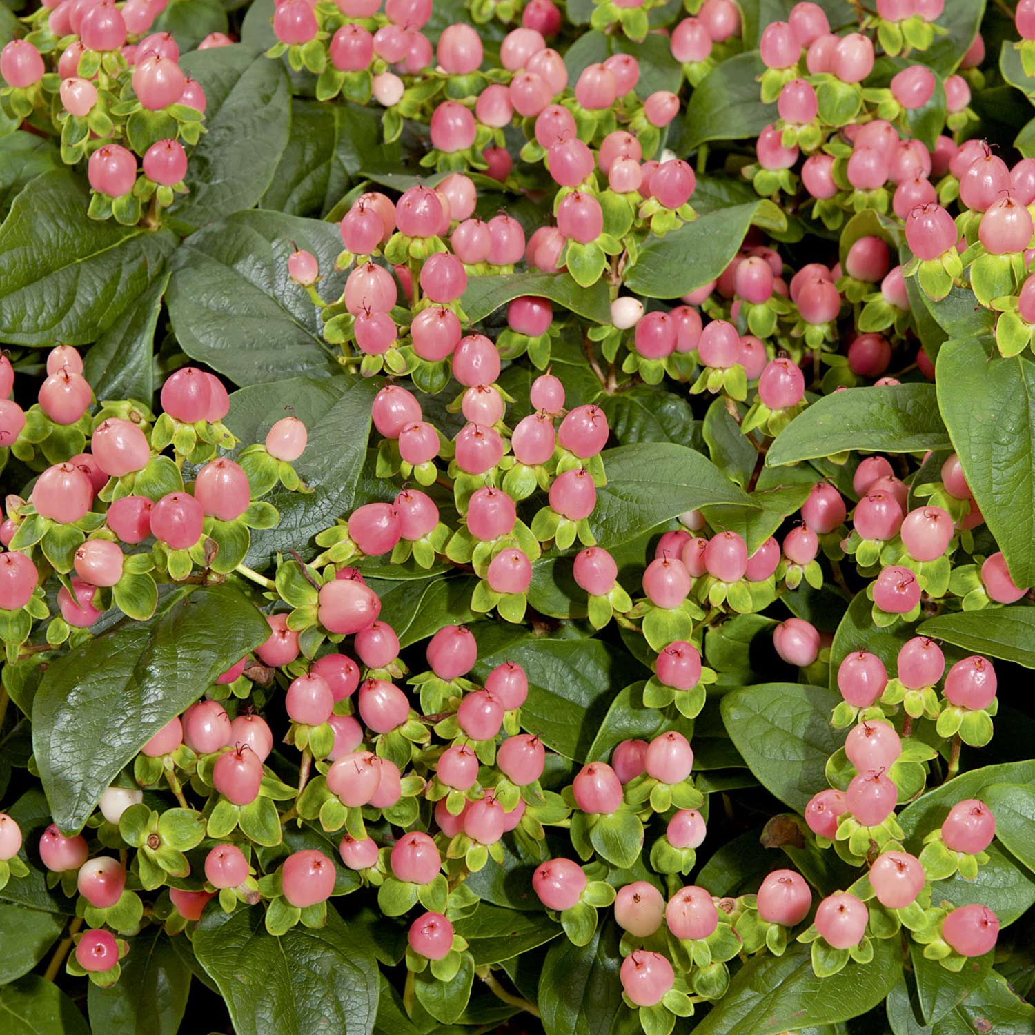 Das Echte Johanniskraut 'Miracle Blossom' verzaubert jeden Garten, Balkon oder Terrasse mit seiner einzigartigen Farbvielfalt. Von den leuchtend gelben Blüten im Juni bis zu den dekorativen rosa bis roten Früchten ab September, bietet diese Pflanze ein durchgehendes Farbspektakel. Die zahlreichen Früchte, die wie Perlen glänzen, und das kräftige dunkelgrüne Laubwerk, das leicht glänzt, machen 'Miracle Blossom' zu einem wahren Schmuckstück in jedem Garten.