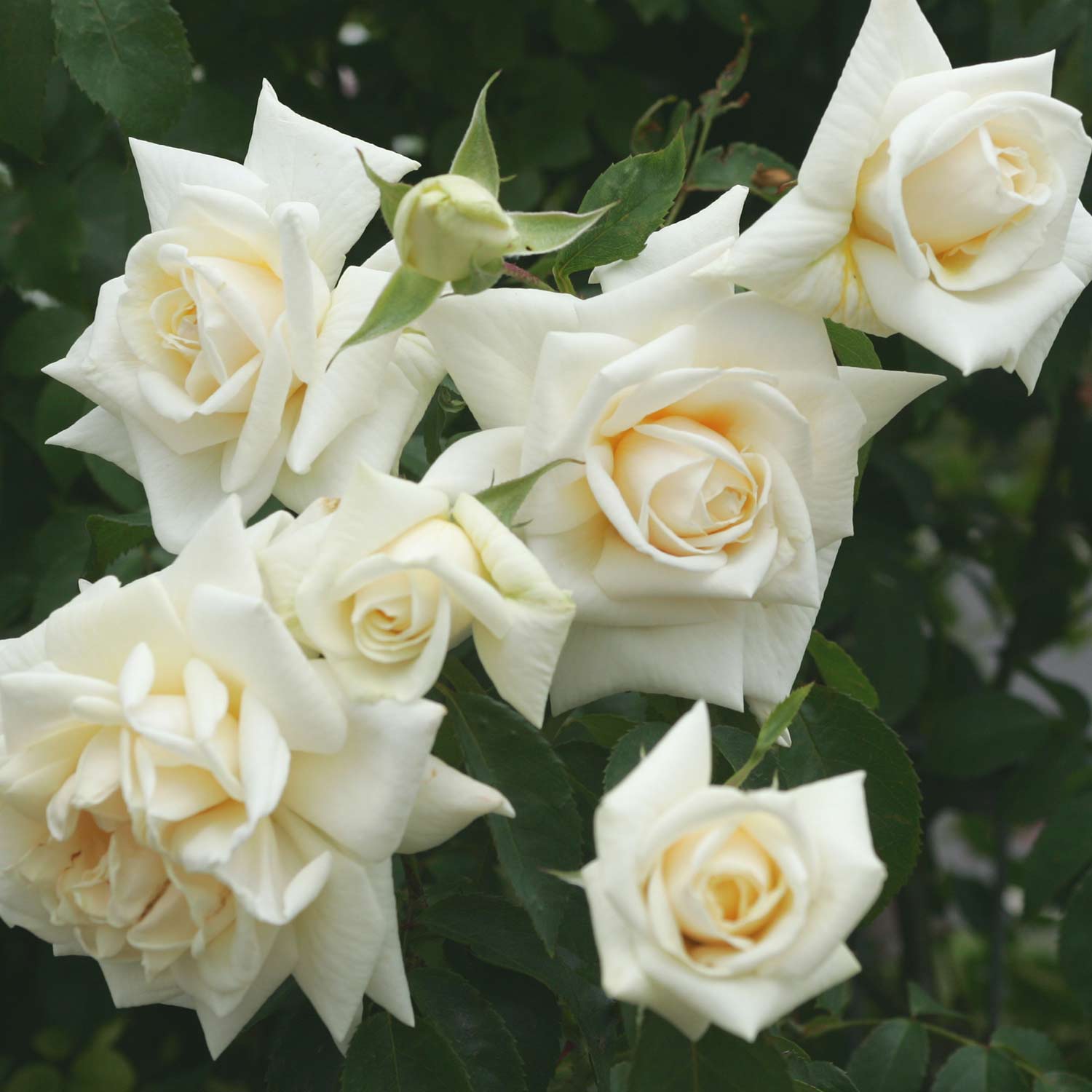 Die Blüten dieser Rose sind schneeweiß und besonders edel gefüllt. Sie verströmen einen herrlichen Duft und blühen von Juni bis September.