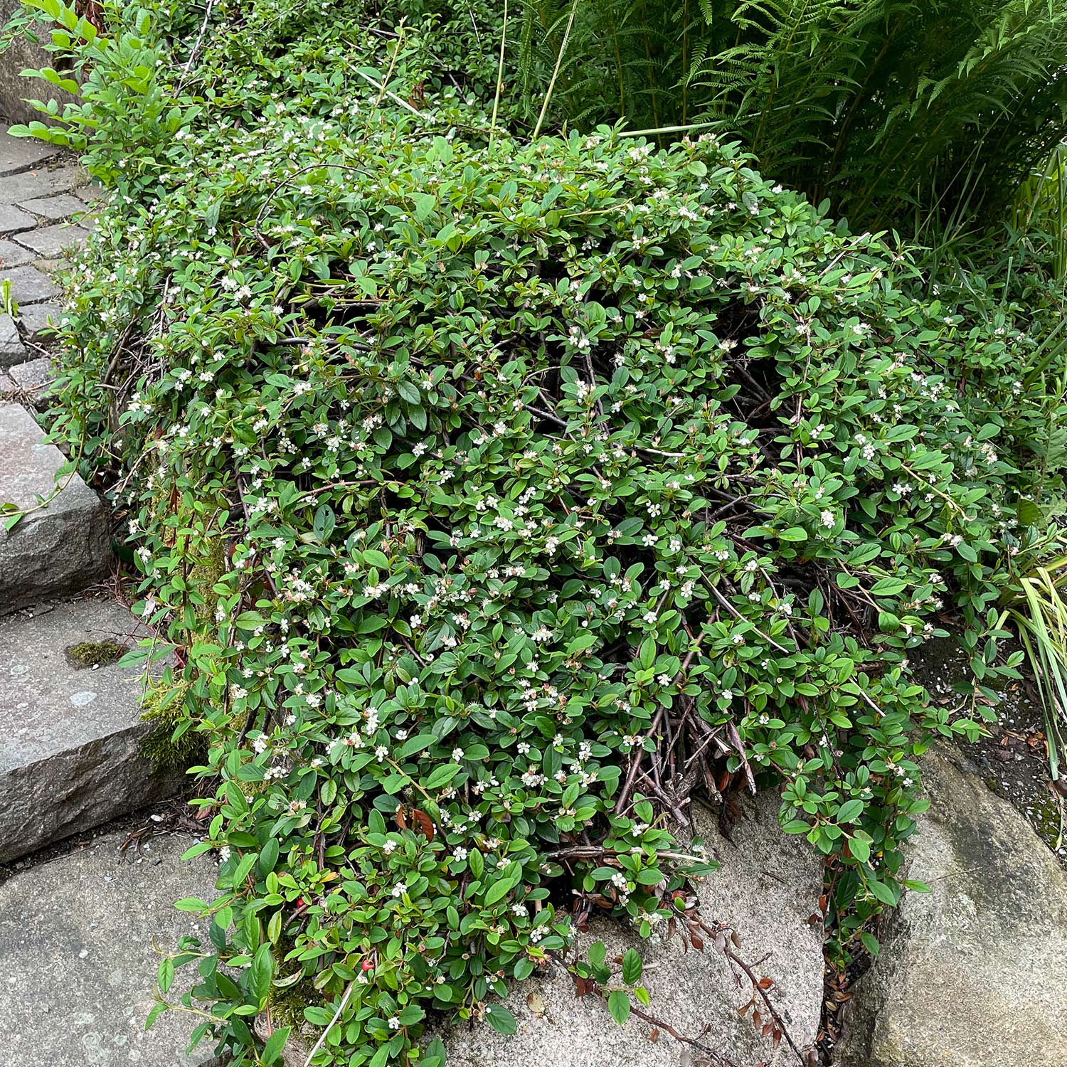 Cotoneaster microphyllus 'Streibs Findling' steht am liebsten sonnig bis halbschattig. An den Boden stellt er keine besonderen Ansprüche. Nährstoffreiche, frische Lagen werden genauso wie trockene problemlos angenommen. Die Wuchshöhe der Kriechmispel überschreitet 15 cm in der Regel nicht. Pro Jahr kann man bei 'Streibs Findling' mit einem maximalen Zuwachs von 10 cm rechnen.