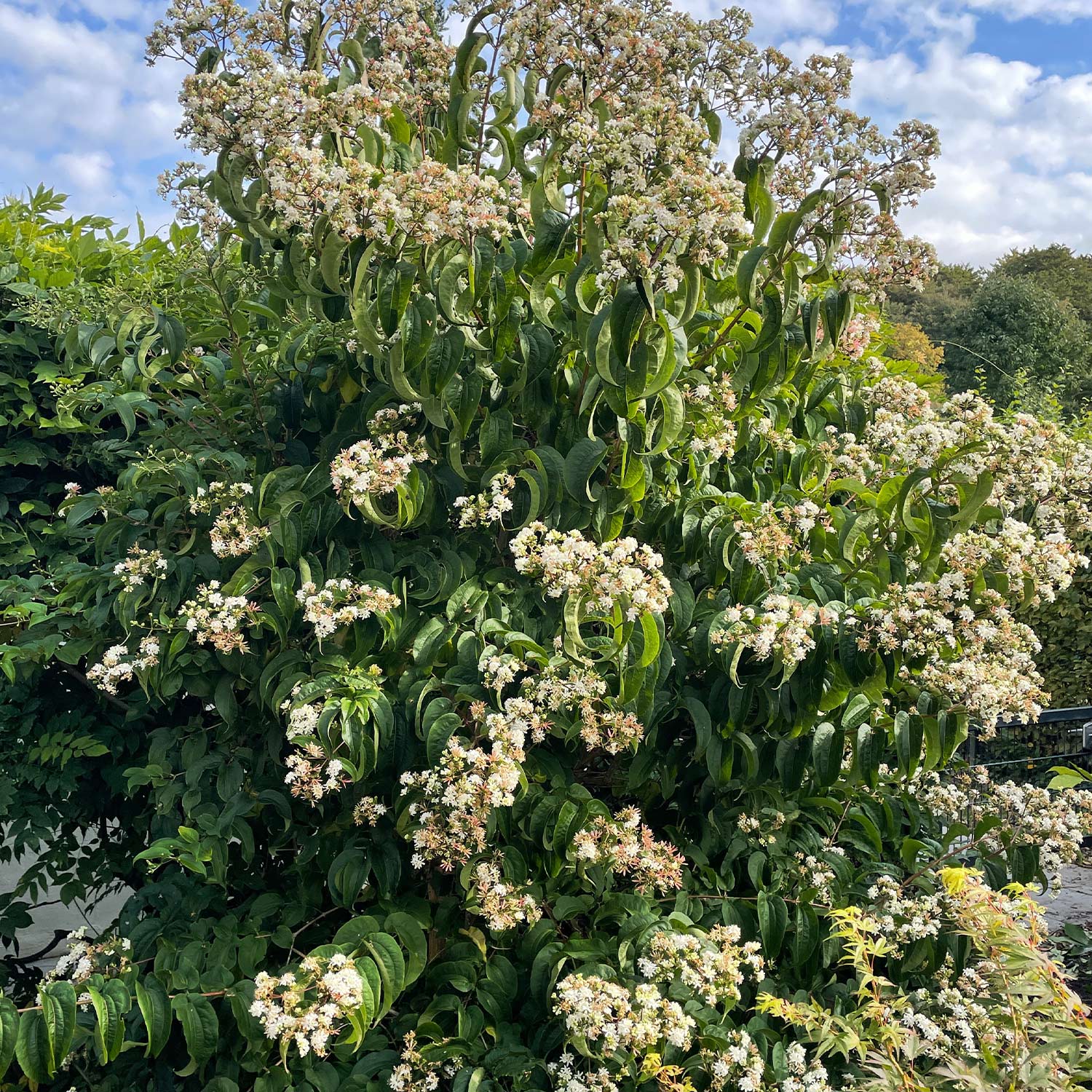 Der Bienenbaum, wissenschaftlich Tetradium daniellii genannt, oft auch als Duftraute bekannt, ist eine außergewöhnliche Bereicherung für jeden Garten. Dieser dekorative Baum zieht mit seinen duftenden, cremeweißen Blüten, die im Spätsommer erscheinen, zahlreiche Bienen, Schmetterlinge und andere Bestäuber an. Neben seinem ökologischen Wert als wichtige Nahrungsquelle im Hochsommer, wenn Nahrung knapp wird, bietet der Bienenbaum auch eine attraktive Optik mit seinem üppigen Blattwerk und der strukturierten Rinde.