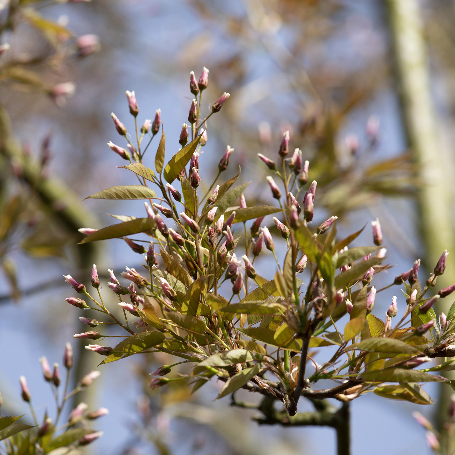 Die Felsenbirne "Robin Hill" wird auch gern Baumfelsenbirne genannt, da sie so gezüchtet wurde, dass sie ein baumartiges Wachstum mit Kronenbildung vorweisen kann. Die weißen Blüten erscheinen in Trauben im März/April und sind herrlich duftend. Die schwarz/violetten Früchte erscheinen ab Juni und fallen früh ab.