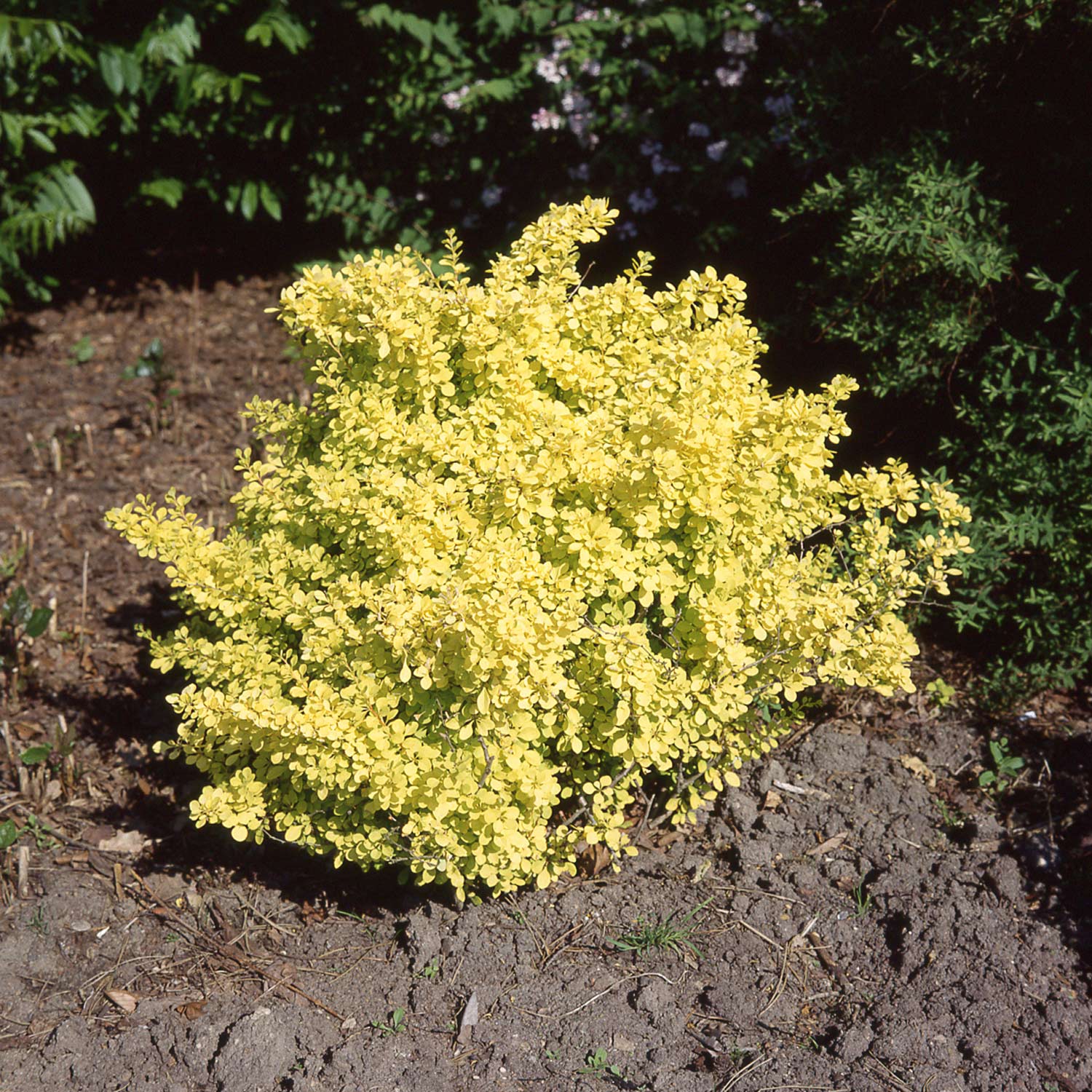 Die Zwerg-Berberitze hat dichtes, goldgelbes Laub. Es ist sehr sonnenfest und hat eine enorme Leuchtkraft. Seine cremegelben Blüten erscheinen von Mai bis Juni.