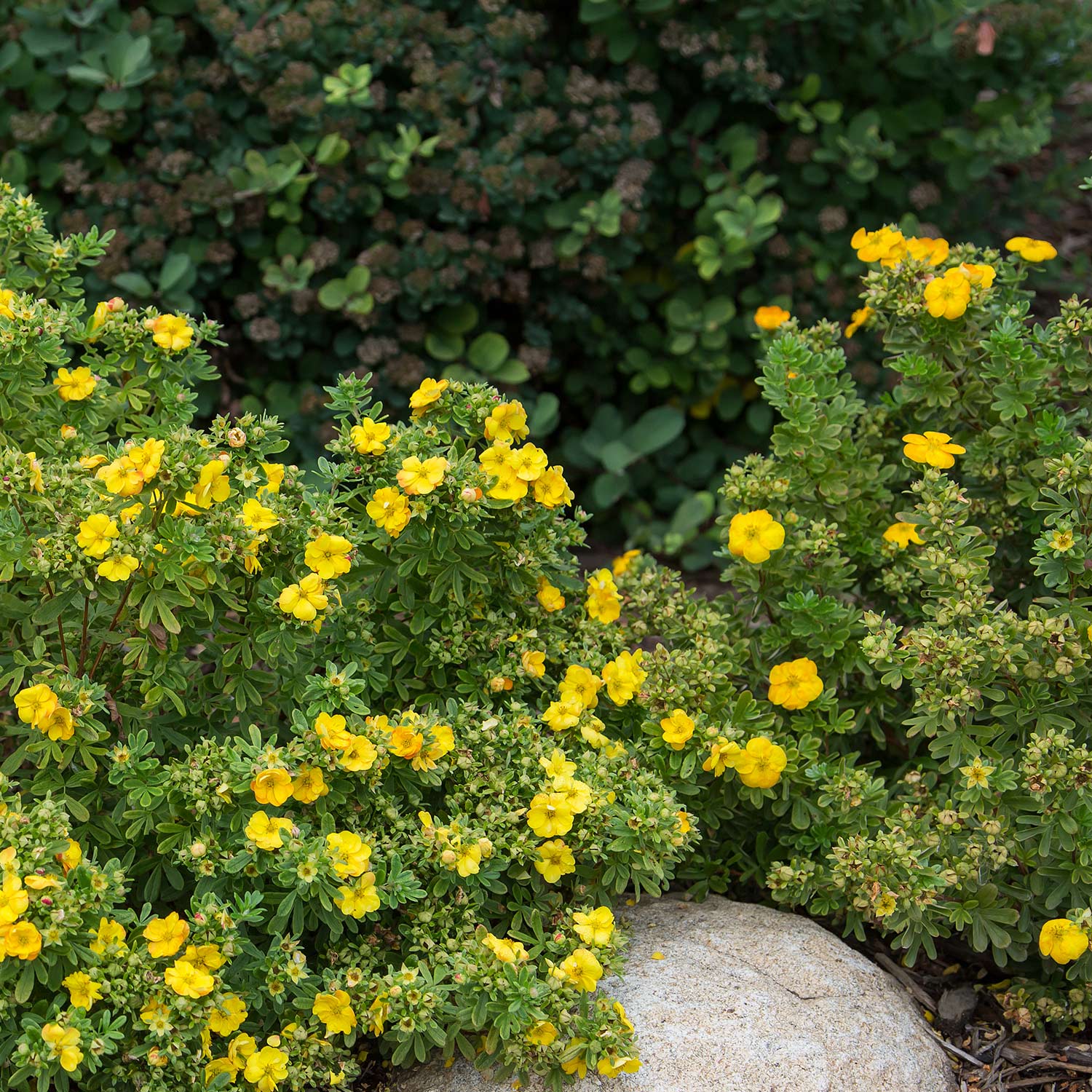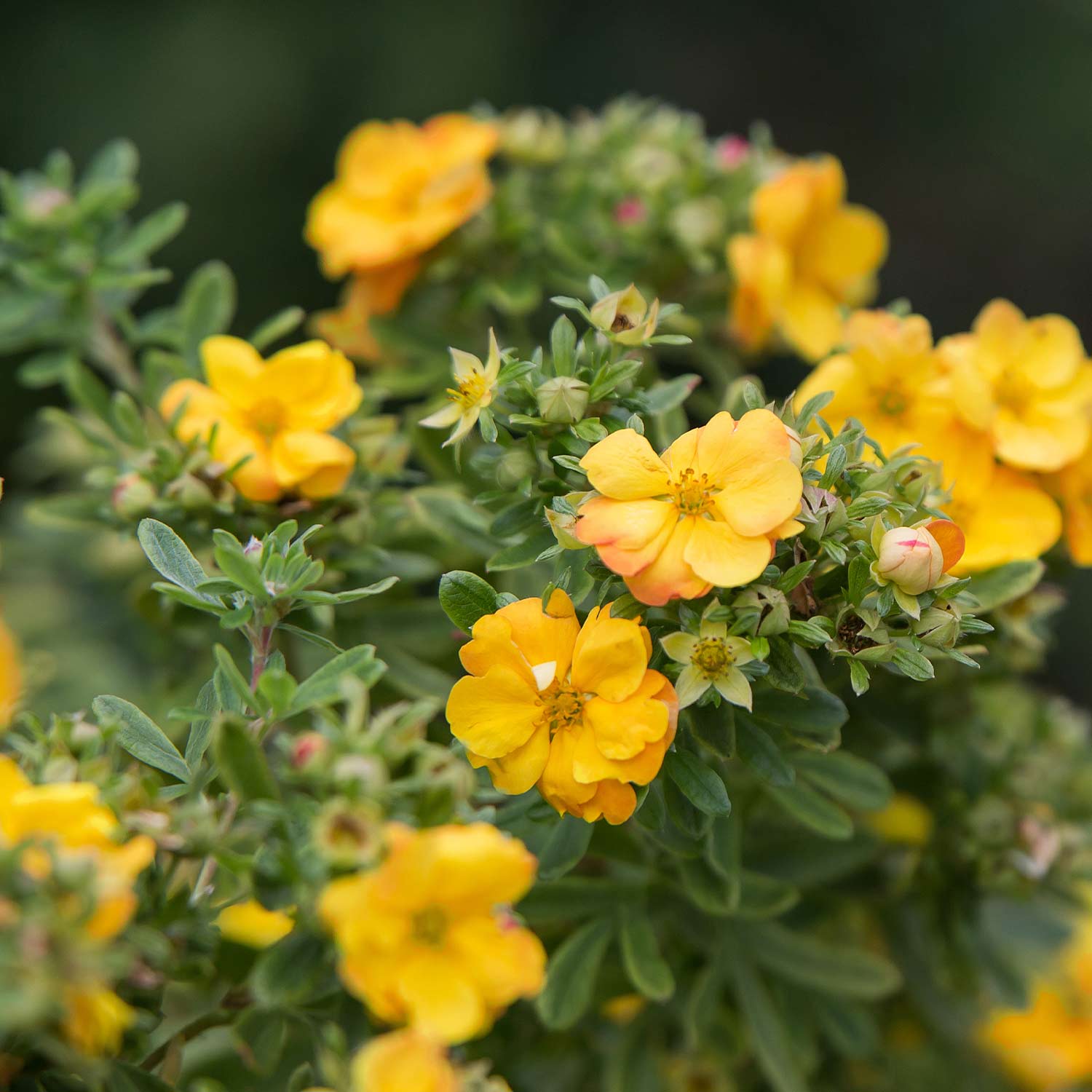 Der Fingerstrauch 'Marmelade®' bevorzugt einen sonnigen bis halbschattigen Standort mit gut durchlässigem Boden. Eine moderate Bewässerung ist ausreichend, besonders in trockenen Perioden. Ein leichter Rückschnitt im Frühjahr fördert die Verzweigung und unterstützt eine üppige Blütenbildung in der kommenden Saison.