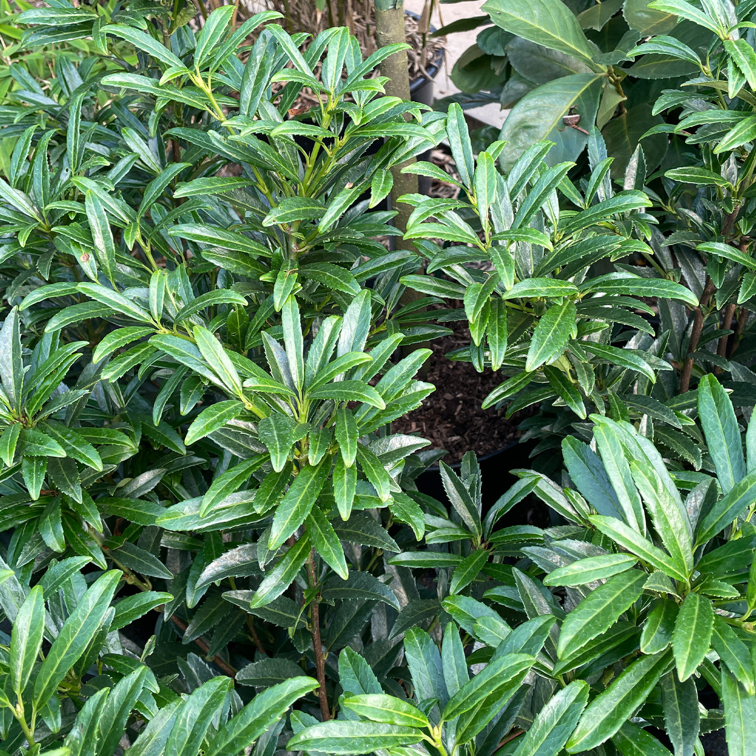 - Blattaustrieb bronze, später dunkelgrün glänzend, immergrün, schmal lanzettlich, gesund und vital