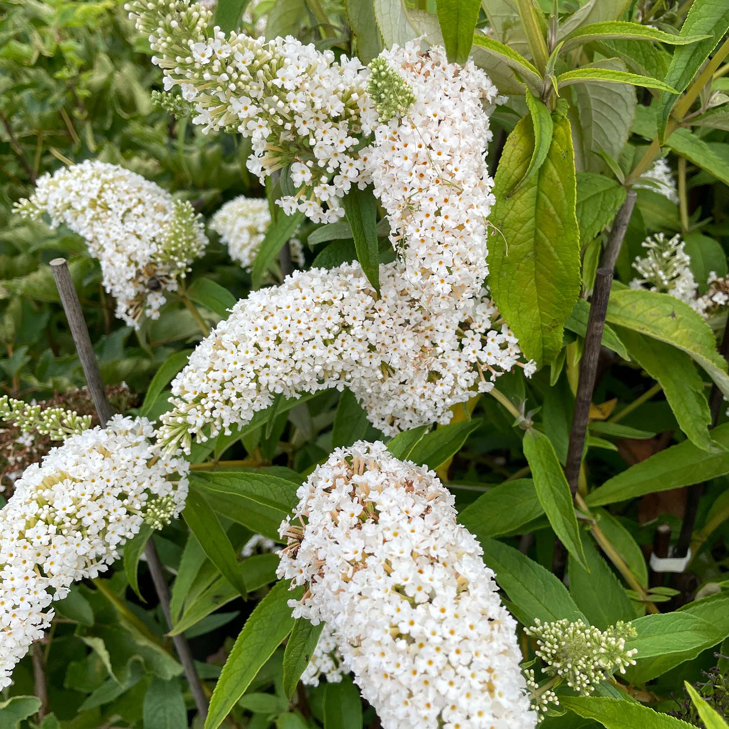 Das lanzettliche Blatt ist grün, leicht behaart und zeigt an der Blattunterseite eine silbrige Färbung. Dieses satte Grün ist ein wunderschöner Akzent zu den vollen, weißen Blüten die sich während Ihrer Blütezeit von Juli bis September präsentieren. Dabei verströmen die langen weißen Rispen einen leichten Duft. Auch deswegen wird dieser Strauch gerne als Schmetterlingflieder oder Schmetterlingsstrauch bezeichnet - er ist ein wahrer Schmetterlingsmagnet.