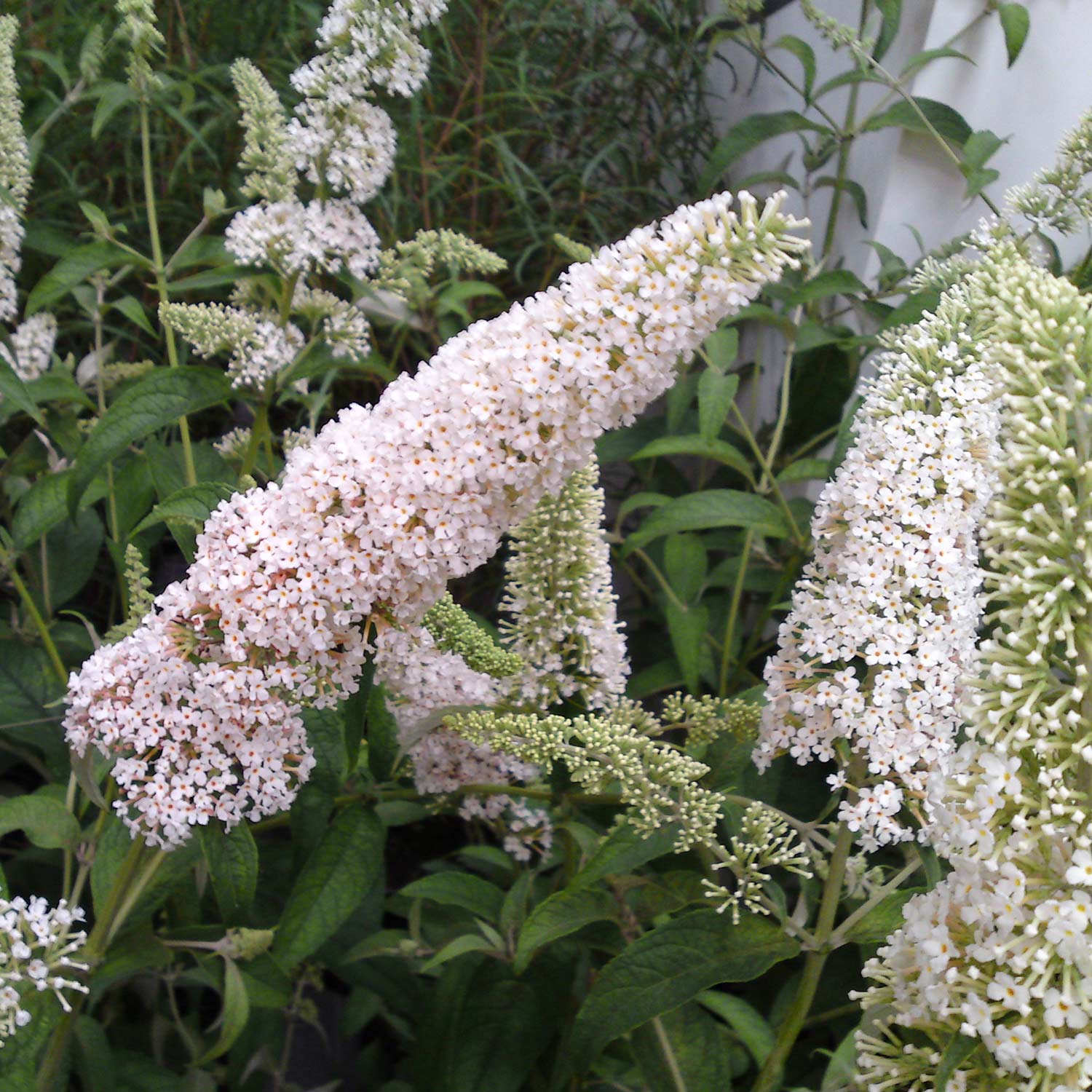 Der Zwerg-Schmetterlingsflieder "Reve de Papillon White" ist die weiße Variante des im Original pinken "Schmetterlingstraums". Der Wuchs dieses schönen Sommerflieders ist kompakt, buschig und erreicht nur eine Höhe von ca. 110 cm, wodurch er zur Verwendung in jedem Garten sehr gut geeignet ist.