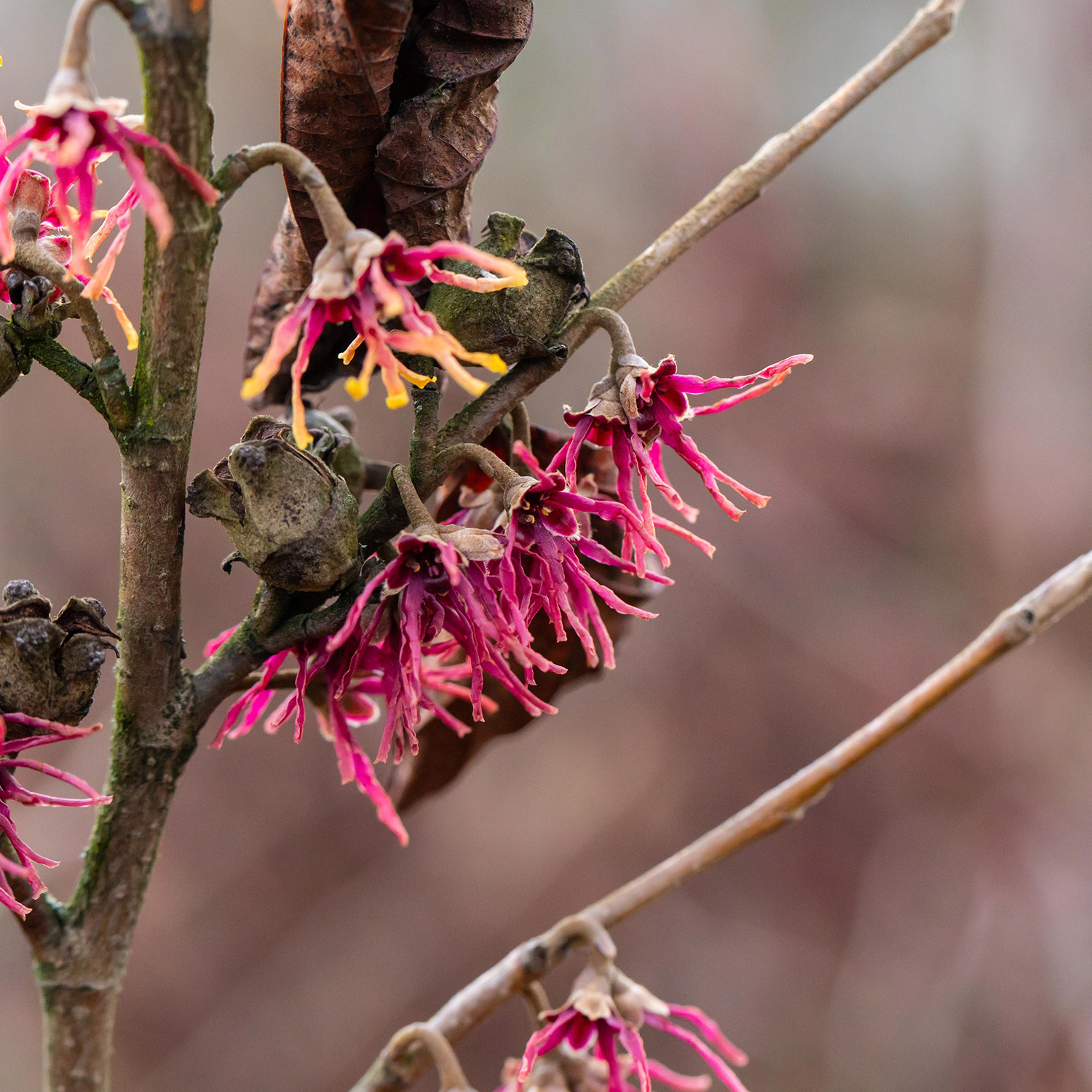 Die Zaubernuss 'Washington Park' ist ein wahrhaft magisches Gewächs in jedem Garten, das durch seine außergewöhnliche Farbenpracht in den kältesten Monaten des Jahres besticht. Von Januar bis März, wenn die meisten Gärten in einen tiefen Winterschlaf gefallen sind, erweckt 'Washington Park' die Landschaft mit seinen purpurroten Blüten zum Leben. Doch nicht nur im Winter zeigt sich die Zaubernuss von ihrer besten Seite: Auch im Herbst bezaubert sie mit einer leuchtend gelben Laubfärbung, die einen strahlenden Kontrast zu den üblichen Herbstfarben bietet und somit ein durchgängiges Farbspektakel in Ihrem Garten garantiert.