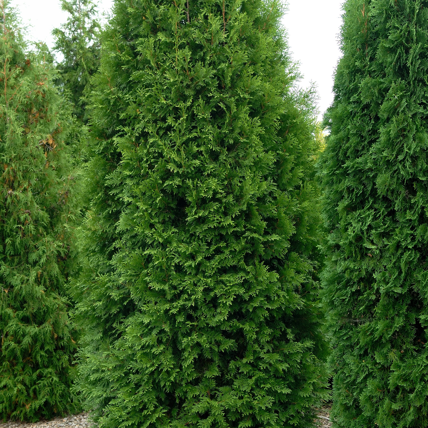 Die Nadeln der Thuja 'Brabant' haben eine dunklere und kräftigere Farbe als andere Thuja und wachsen besonders dicht, so dass sich bei einer Heckenpflanzung ein toller Sicht- und Schallschutz bildet. Der Wuchs ist straff aufrecht und die Pflanze kann problemlos bei jedem Wetter zurückgeschnitten werden.