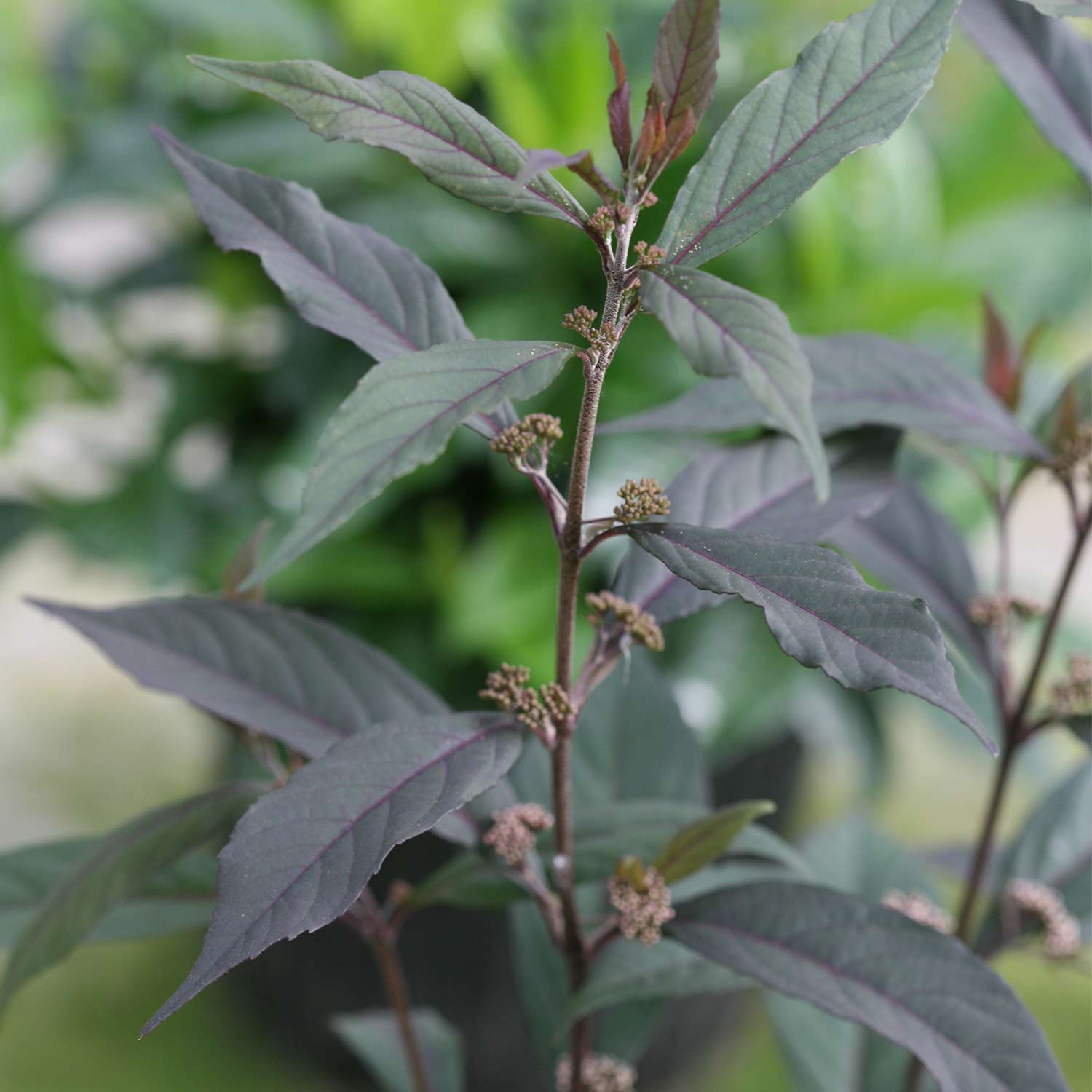 - Violettes Laub bereits im Frühjahr, im schönen Kontrast zu den weißen Blüten
