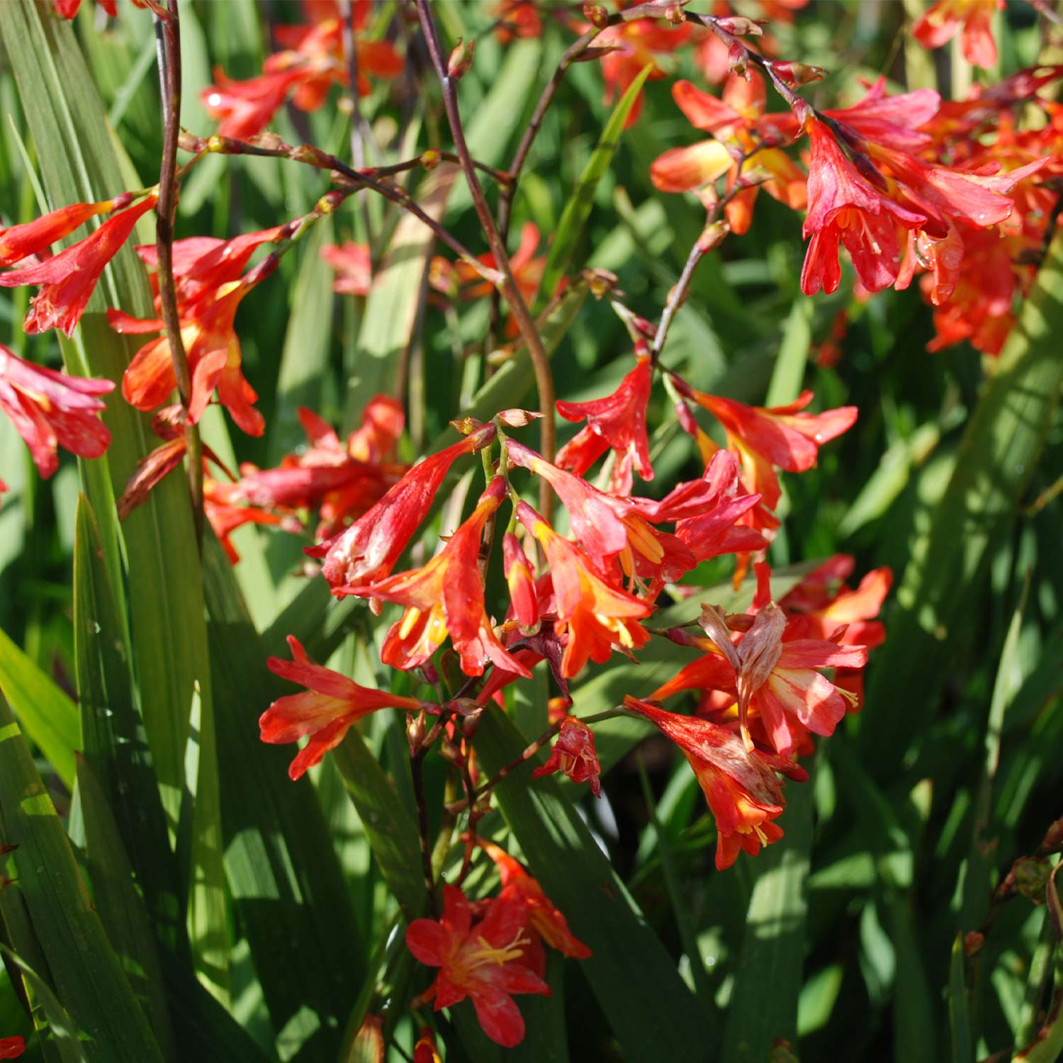 Die Heimat der Montbretie 'Meteor' liegt in Südafrika, Madagaskar, Tansania und Malawi. Diese wurde 1887 vom Botaniker Lemoine gezüchtet und benannt. Ihr botanischer Name Crocosmia 'Meteor' geht auf die griechischen Worte 'krokos' und 'osme' für Geruch zurück, denn zerreibt man die Blätter, verströmen diese einen leichten Safranduft.
