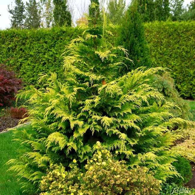 Die Nadeln der Gelben Scheinzypresse sind gelbgrün und weich, sie sitzen an biegsamen Zweigen. Die reich verzweigte "Stardust" wird sehr gerne in Parks, Hausgärten oder als Sichtschutz verwendet, denn sie ist auch gut als dichte Hecke zu verwenden.