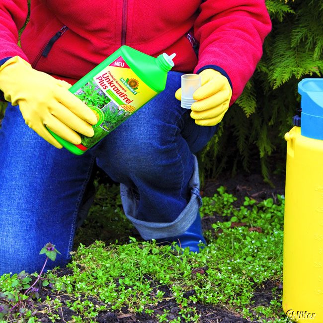 - 16,6 %ig, d.h. 100 ml mit 500 ml Wasser mischen für 6 m² Unkrautfläche