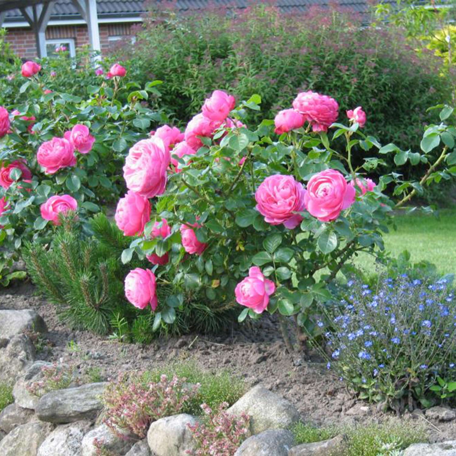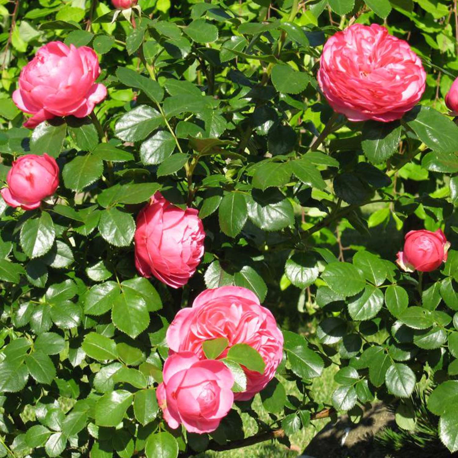 Die Blüten der Nostalgischen Rose 'Sansibar' sind strahlend dunkelrosa und nostalgisch gefüllt. Sie sind sehr farbstabil, verblassen bei voller Sonne also nur wenig und verströmen einen leichten, unwiderstehlichen Hauch von Duft.