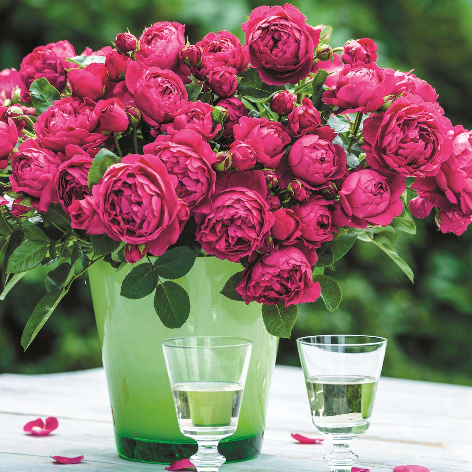 - purpurviolett bis pink, locker gefüllt, ca. 9 cm, duftend, schalenförmig
