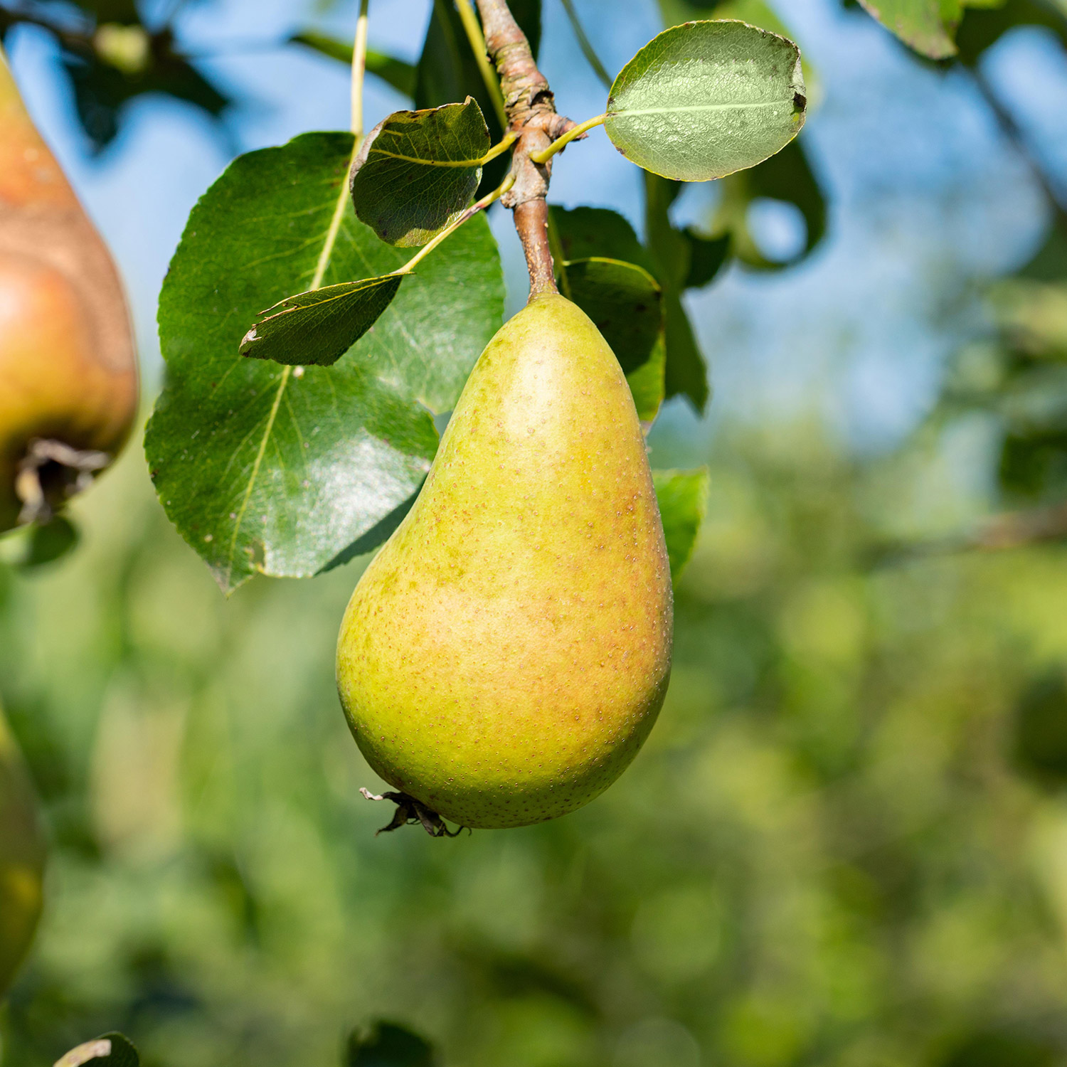 Ab Anfang September sind die 'Conference' Birnen pflückreif und bieten bis in den November hinein ein köstliches Geschmackserlebnis. Ihre Lagerfähigkeit bis Ende Dezember macht sie besonders wertvoll.