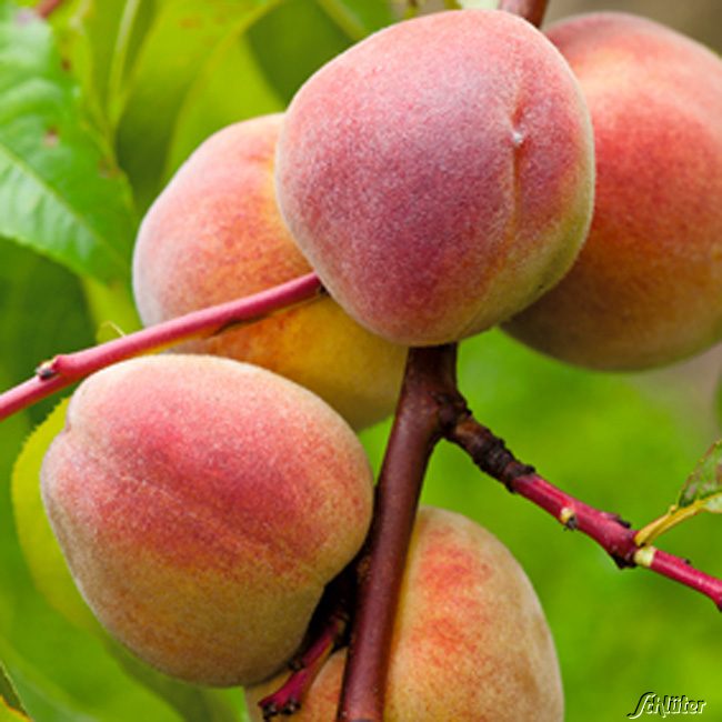 Die Ernte des leckeren Pfirsichs erfolgt im September.