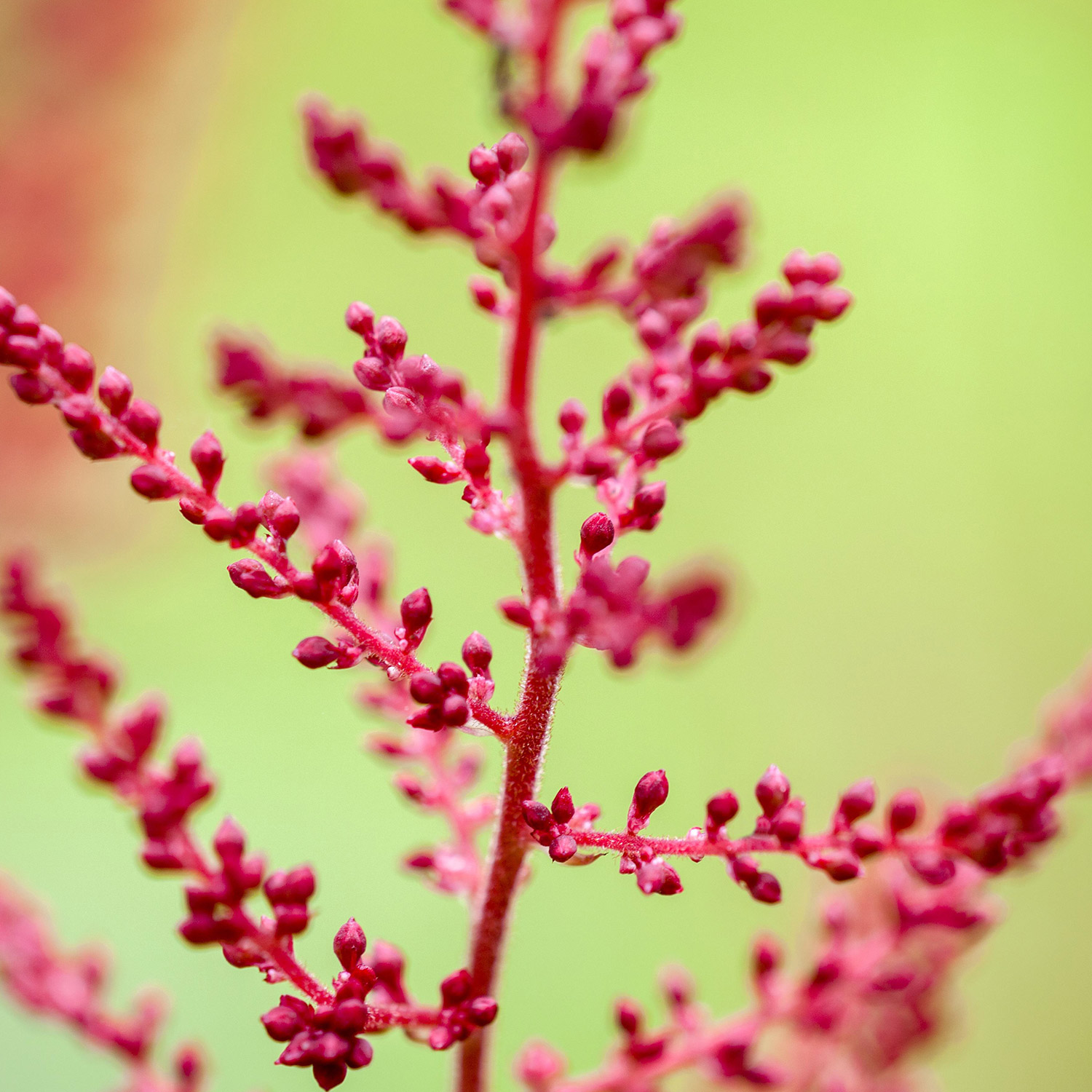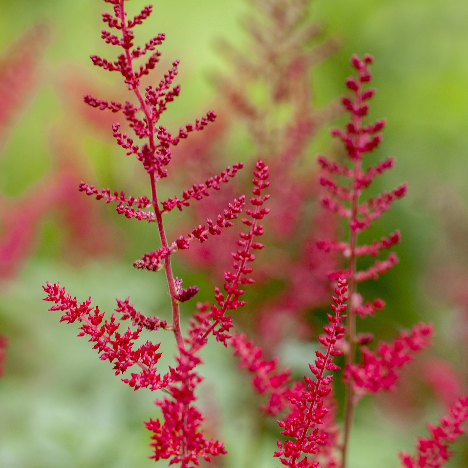 Die Prachtspiere dieser Sorte haben eine wunderschöne dunkelrote Färbung. Prachtspieren haben rispenartige Blüten, die aussehen wie Federn. Sie lassen sich sehr gut als Schnittpflanze verwenden.