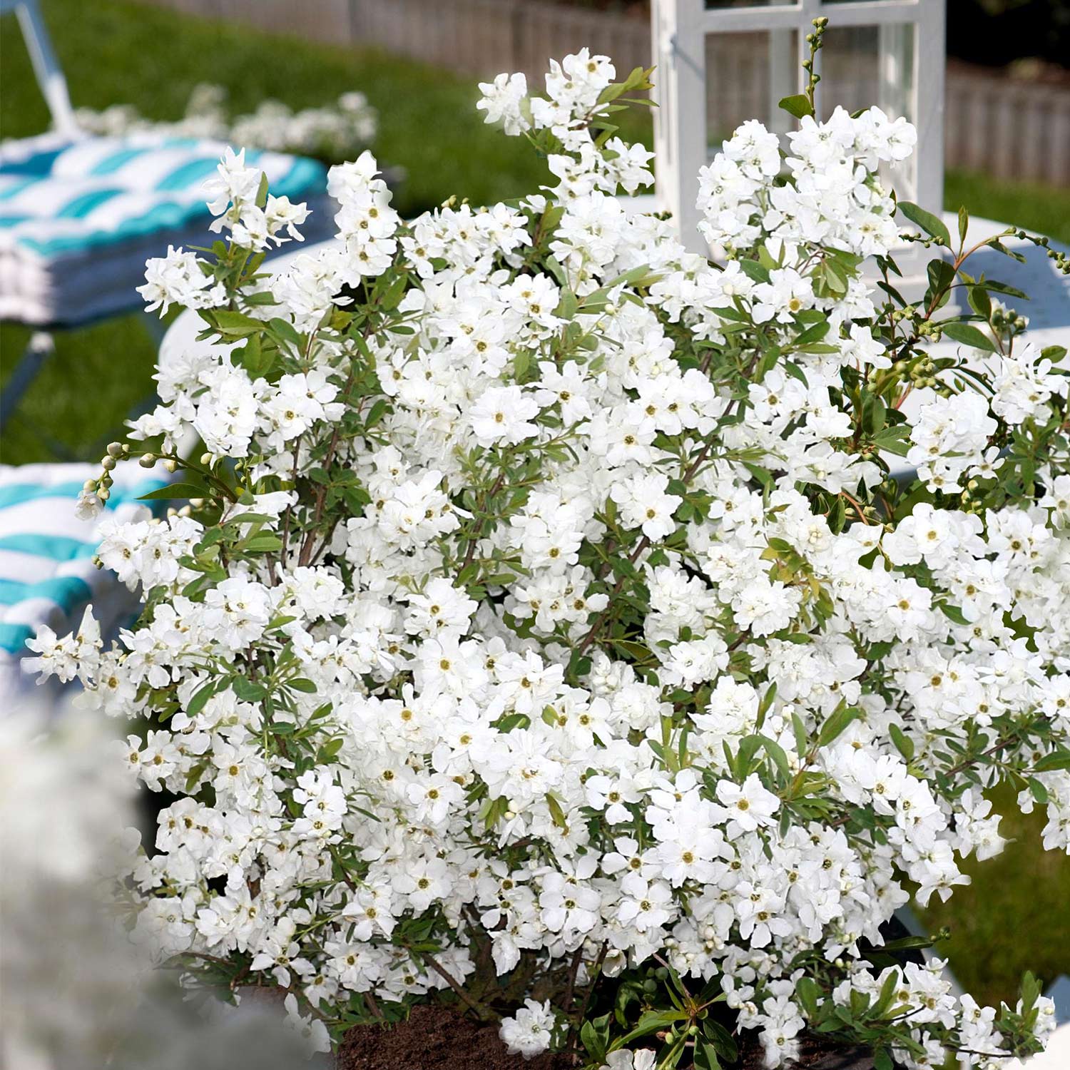 Die Exochorda racemosa 'Niagara' zeigt im Mai an ihren bogig überhängeden Zweigen massenweise reinweiße Blüten. Wer die Prunkspiere einmal gesehen hat, wird sie nie wieder vergessen, wie wenn man einmal die Niagara-Fälle gesehen hat. Die Exochorda racemosa 'Niagara' hat einen kompakten Wuchs und wird bis zu ca. 120 cm hoch. Um die Blütenpracht noch mehr zu fördern, sollte man einen sonnigen Standort wählen.
