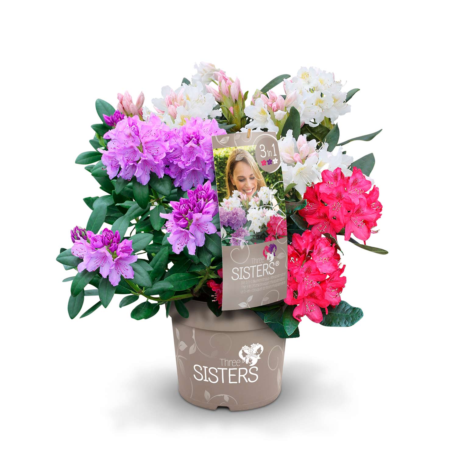 Lassen Sie sich von der einzigartigen Schönheit des Rhododendron-Trios 'Three Sisters®' begeistern. Ob als farbenfrohe Unterpflanzung, in der Gruppenpflanzung oder als dekoratives Highlight im Kübel – 'Three Sisters®' bringt lebendige Farben und Freude in Ihren Garten.