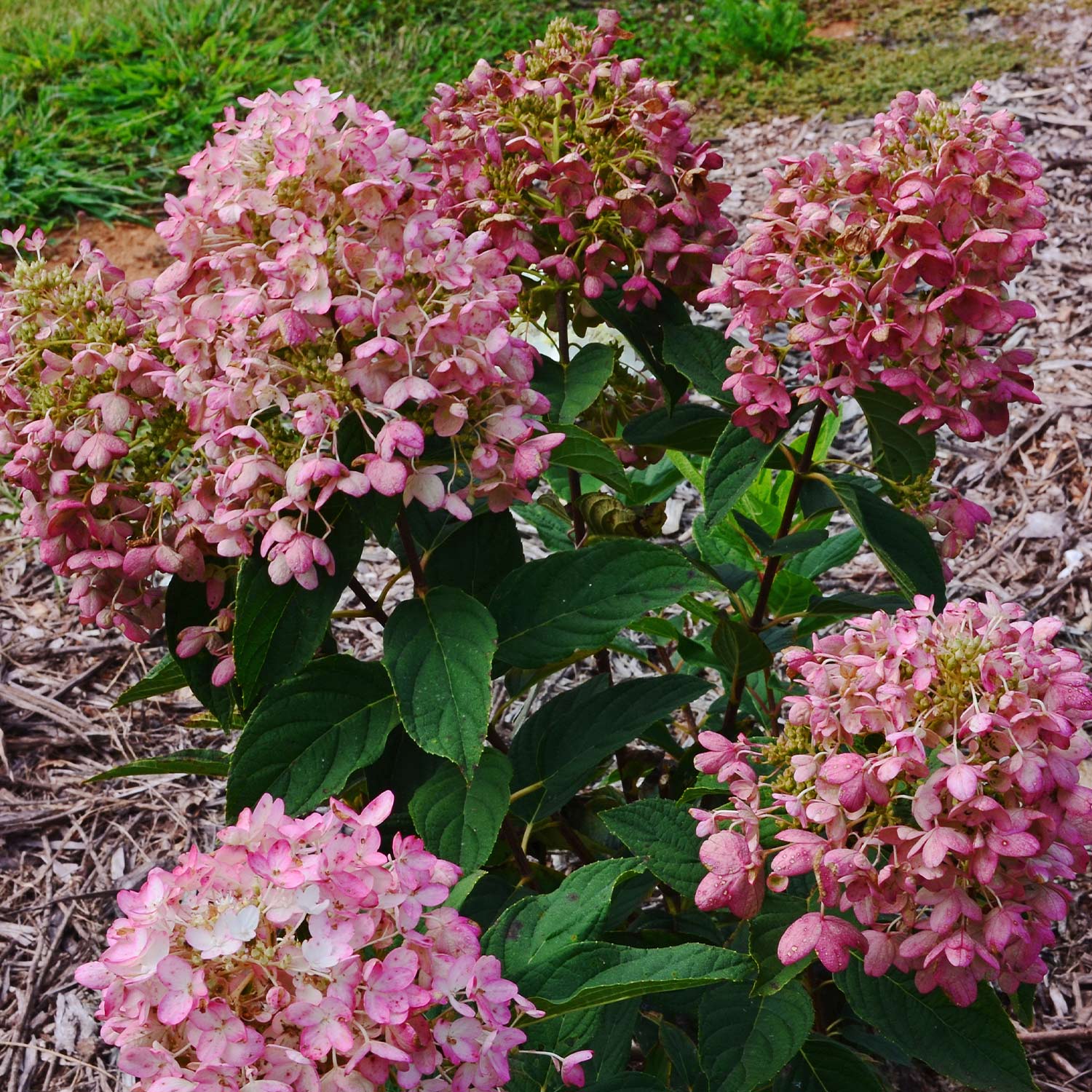 Die Rispenhortensie Hydrangea paniculata 'Tickled Pink' begeistert als neue Hortensiensorte mit einer Farbvielfalt, die jeden Garten bereichert. Von Juni bis September schmücken große Blütenrispen, die von Weiß bis Rosa changieren, diese kompakte und kugelig wachsende Pflanze.