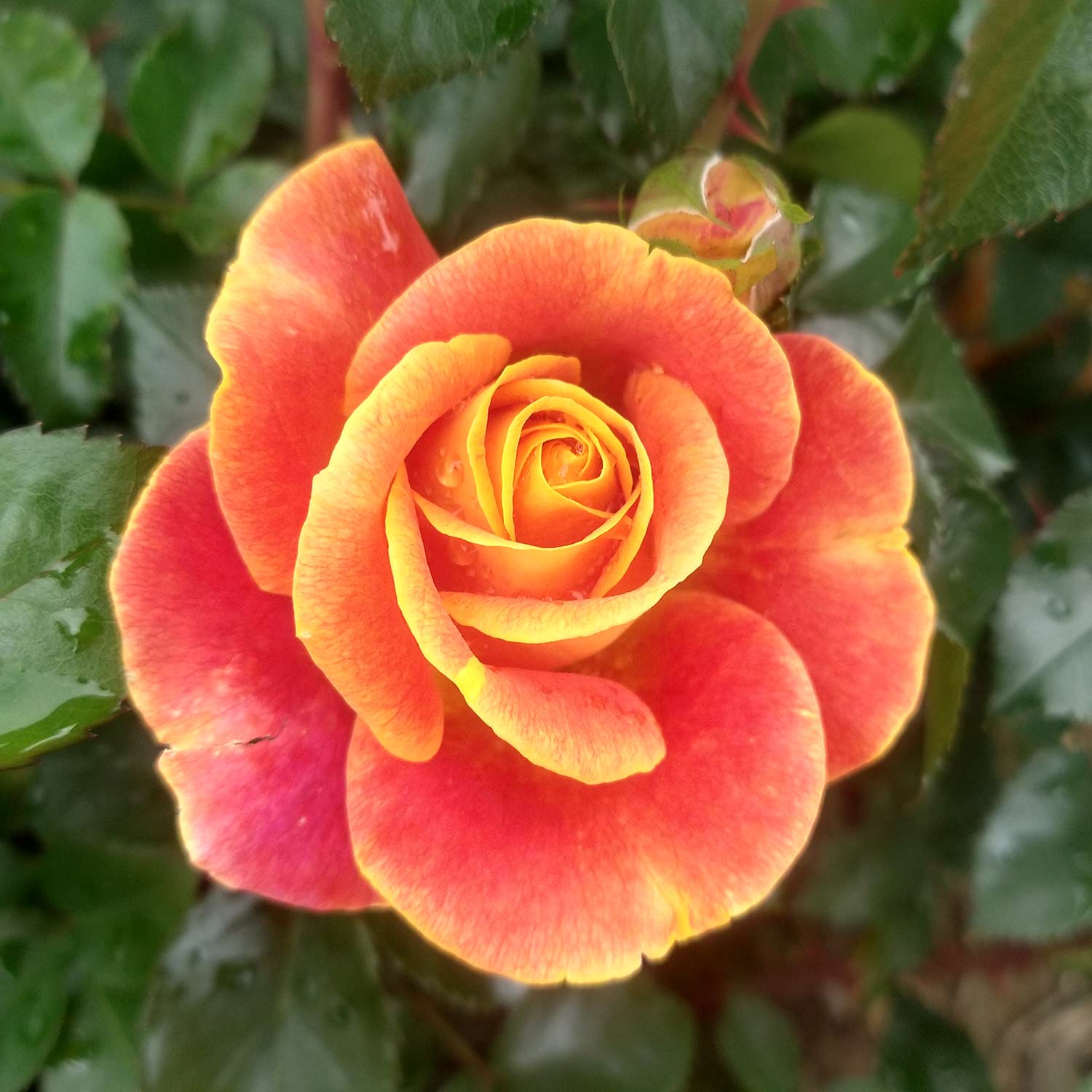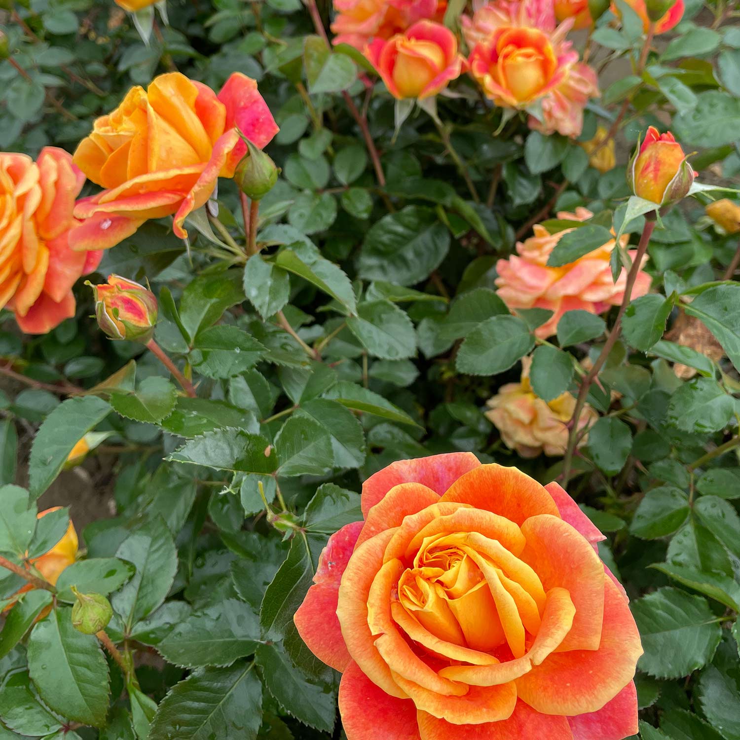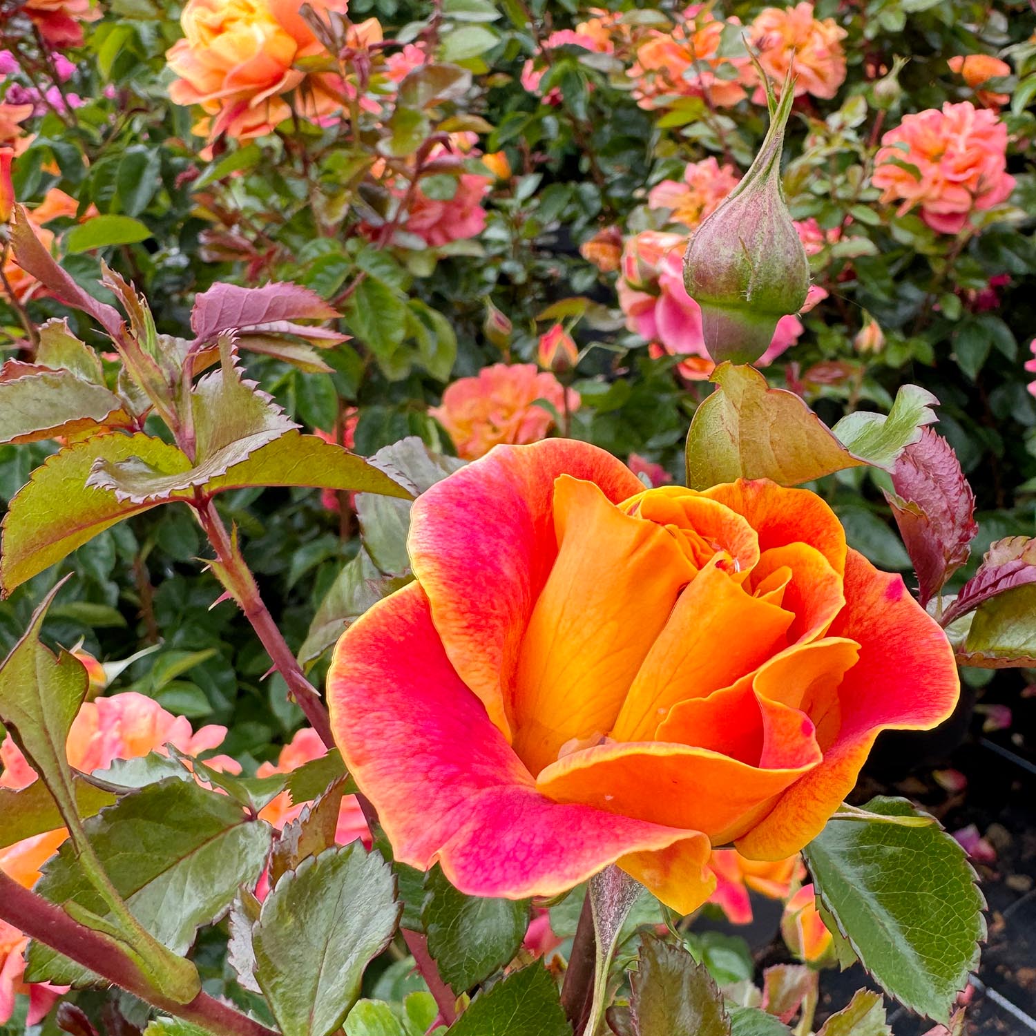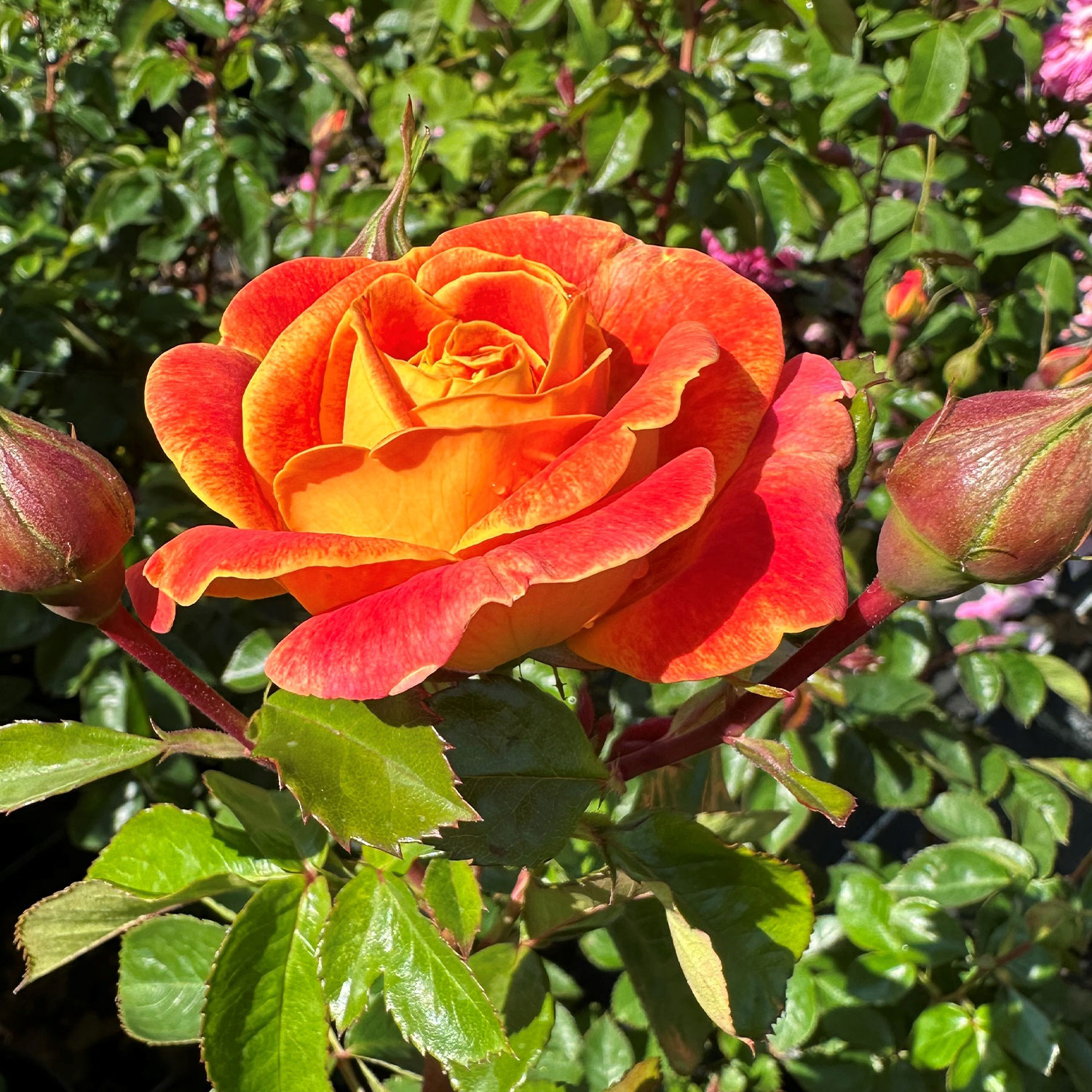 Die Beetrose 'Gold Espresso®' ist eine spektakuläre Neuzüchtung, die mit ihren aufregend geflammten, rot-orangen Blüten, die an Fackeln erinnern, beeindruckt. Diese Rose ist nicht nur ein visuelles Highlight, sondern auch wegen ihrer robusten und pflegeleichten Eigenschaften eine Bereicherung für jeden Garten.