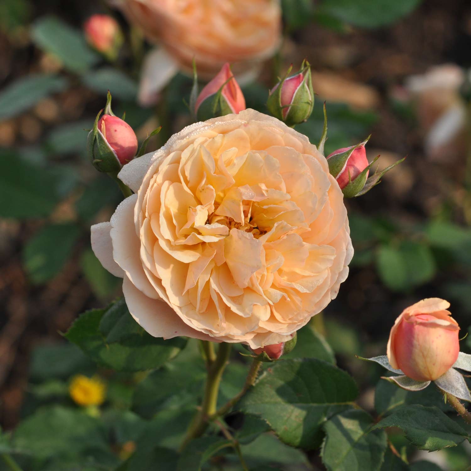 - Blütenfarbe: Apricot, Orange, Lachsrosa mit Gelb im Inneren.